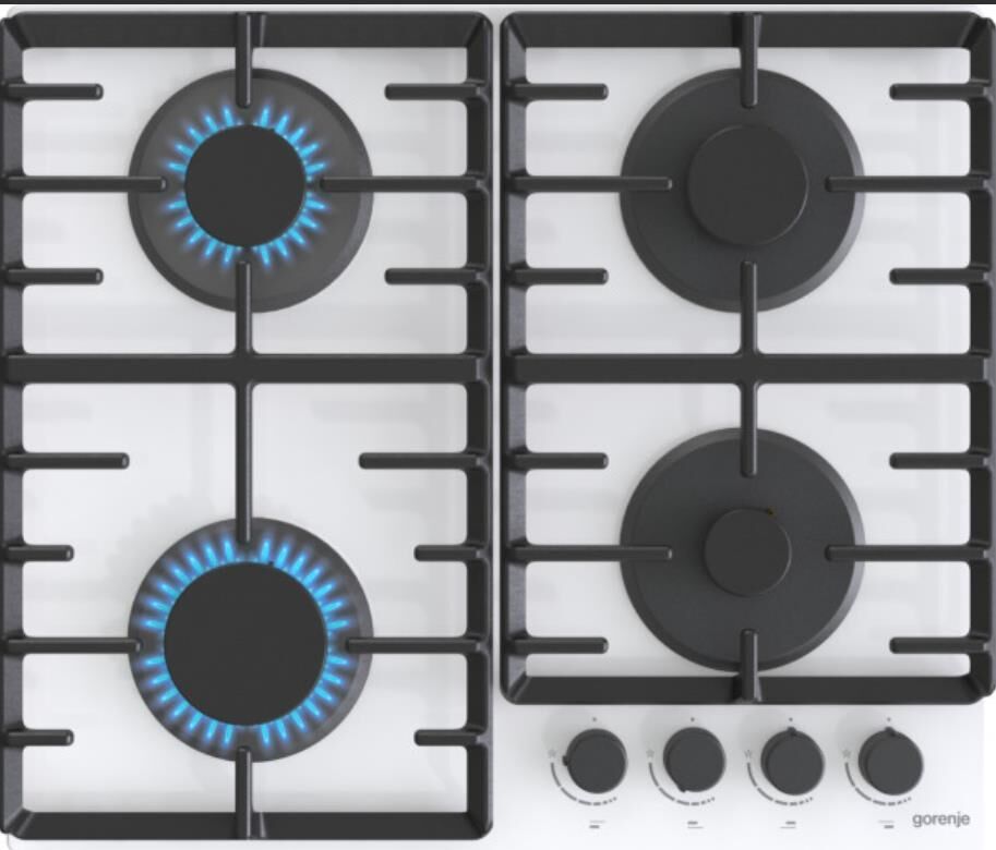 (ВхШхГ)13.6 х 60 х 52см.Материал варочной поверхности закаленное стекло Цвет фурнитуры белый Держатели для посуды чугунные Количество держателей для посуды 2.Управление механическое Переключатели поворотные ФУНКЦИИ Электроподжиг автоматический Газ-контроль Вид и давление газа природный газ G20/20