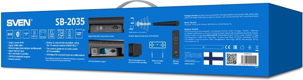 Гарантийный срок: 12 мес., Гарантия - 12 месяцев На территории РФ , Комплектация: Саундбар — 1 шт. Пульт дистанционного управления (ПДУ) — 1 шт. Элементы питания типа ААА — 2 шт. Сигнальный кабель mini-jack к mini-jack — 1 шт. Оптический кабель — 1 шт. Кабель питания — 1 шт. Угловой HDMI переходник — 1 шт. Монтажный шаблон - 1 шт Компл