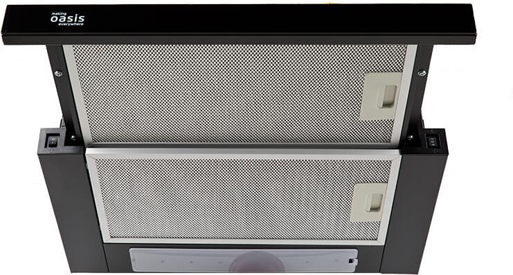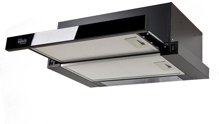 Вид установки встраиваемая Черный+черное стекло, Ширина 500мм, Воздушный поток 500 м/ч, 2 стандартные лампы, Мощность освещения 2x25 Вт, 2 aлюминиевыйх фильтра, необходимое количество угольных фильтров - 2 шт, Модель угольного фильтра FU-24, Уровень шума 34-50 дБ, управление - тумблер, Вес нетто 6,5 кг, Китай