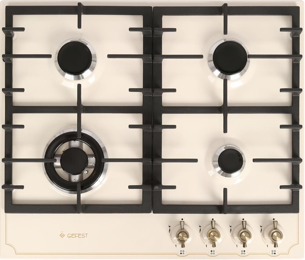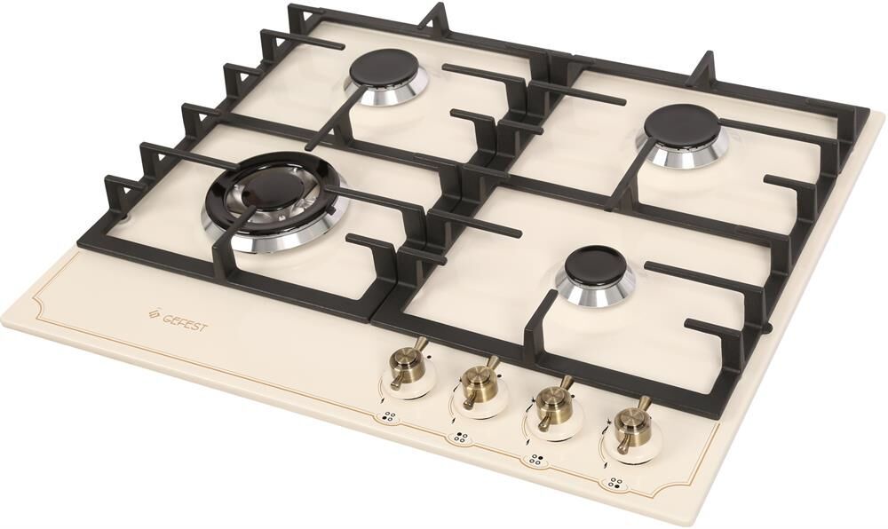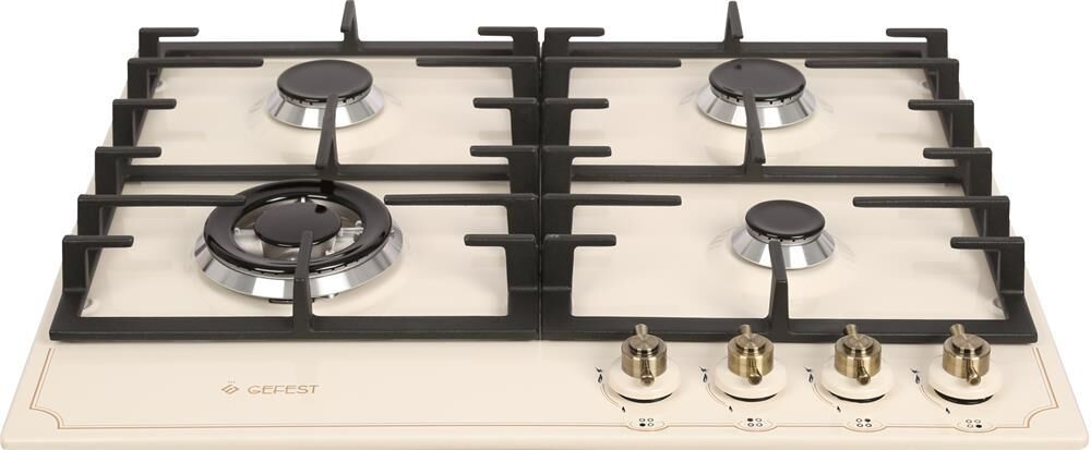 Цвет: кремовый с рисунком "ретро". Варочная поверхность: эмалированная. Габаритные размеры ШхГхВ: 60х51.5х9.5 см * Газ-контроль горелок стола * Чугунные решетки горелок стола * Двухзонная горелка * Электророзжиг горелок, встроенный в ручки * Фиксированное положение «малое пламя» *