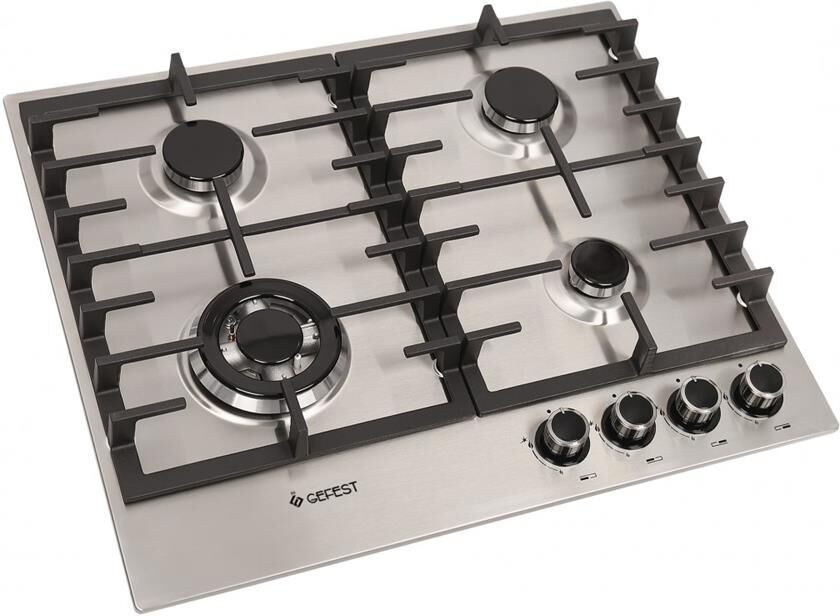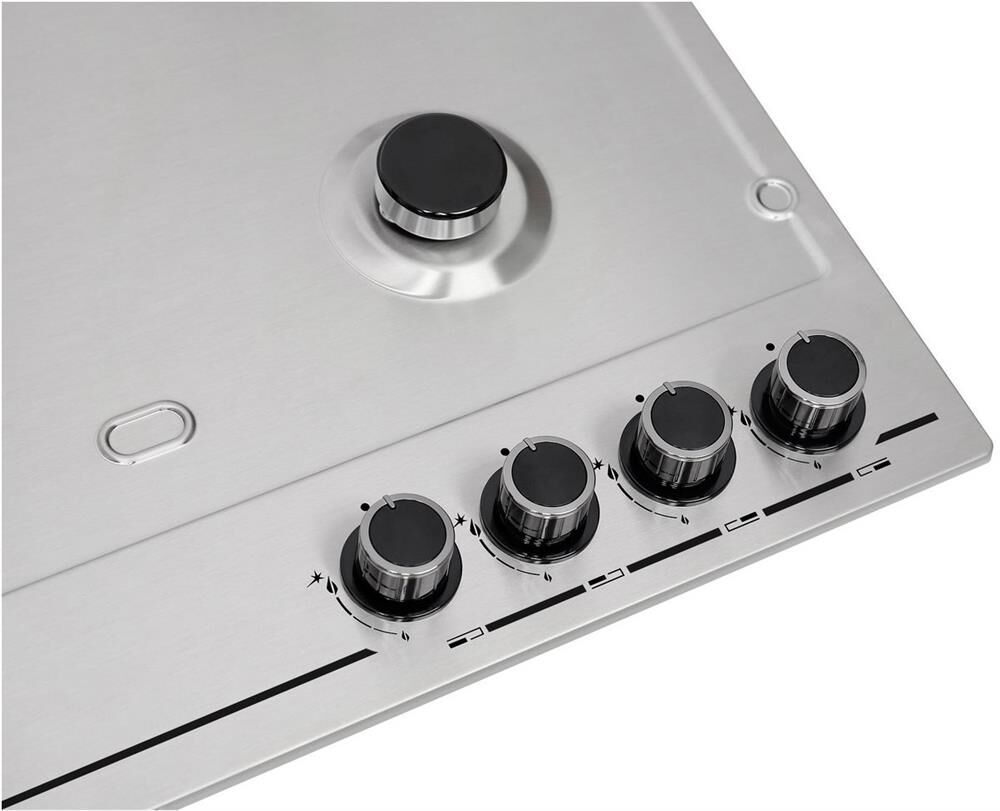 Габаритные размеры ШхГхВ, см: 60x51.5x9.5. Цвет нерж. сталь. Размеры монтажного проема, ШхГхВ, см: 55.8x49. Ультратонкая и гладкая как стекло. , чугунные решётки , автоматический розжиг , газ-контроль , WOK конфорка.