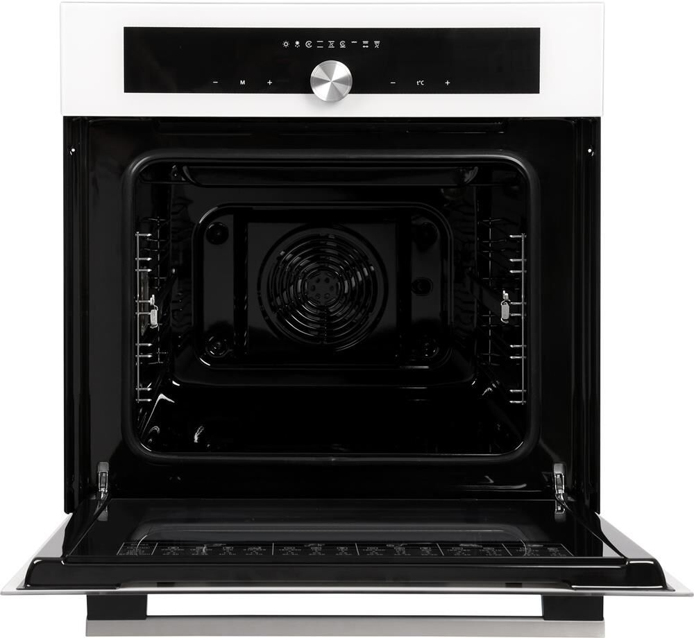 Габаритные размеры ШхГхВ, см: 59.8х56.5х59.5. Размеры монтажного проема, ШхГхВ, см: 56x55x58. Цвет: белый. Объем духовки, л: 55. Тип: электрическая. Фасад: стеклянный. Вертел с электроприводом. Таймер сенсорный. Гриль электрический. Телескопические направляющие. Доводчик «Soft-Close». Тройное остекление. Подсветка духовки двойная. Усиленный гриль с конвекцией. Сенсорное управление. Ускоренный нагрев с конвекцией. Съемные проволочные направляющие духовки. Шашлычница.