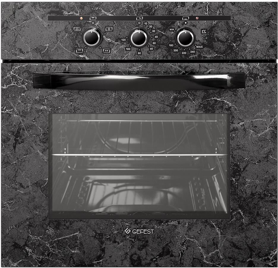 Габариты, ШхГхВ, см: 59.8х56.5х59.5; Тип духовки: газоэлектрическая; Фасад: стеклянный; Цвет: с рисунком "мрамор", черный; Размеры монтажного проема, ШхГхВ, см: 55x54x57; Ширина, см: 59,8; Класс электробезопасности: I; Диапазон номинальных напряжений, В: 220-230; Номинальная потребляемая мощность электроэнергии, кВт: 1,138-1,245; Присоединительная резьба газопровода: G 1/2; Объем духовки, л: 52; Основная горелка газовая; Диапазон температур работы духовки,°C: 170-240; Мощность горелки духовки, кВт: 3,1; Мощность нижнего ТЭН духовки, кВт: 1,2; Электророзжиг духовки: встроен в ручки; Газ-контроль духовки; Таймер: механический; Управление духовки: механическое; Терморегулятор (ТЕРМОСТАТ); Гриль: электрический; Вертел с электроприводом; Подсветка духовки: двойная; Направляющие духовки: съемные проволочные; Стекло дверцы духовки: двойное; Комплектность: решетка, жаровня , сменное сопло, противень; Сетевой шнур и вилка: в наличии