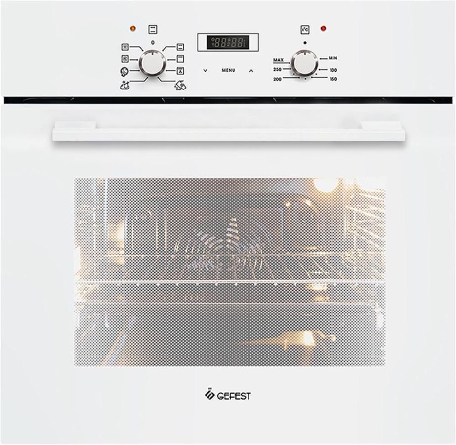 Духовой шкаф. Цвет: белый. Габаритные размеры ШхГхВ: 59.8х56.5х59.5 см. Объём духовки: 55 л. Внутреннее стекло с термоотражающим покрытием. Съемные проволочные направляющие духовки. Гриль электрический. Таймер сенсорный. Доводчик «Soft-Close». Телескопические направляющие. Подсветка духовки двойная. Усиленный гриль с конвекцией. Фасад: стеклянный. Класс электробезопасности: I.