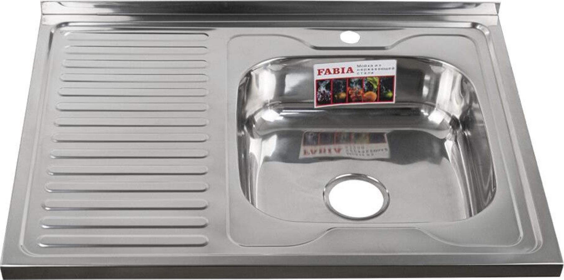 Накладная мойка FABIA из нержавеющей стали отличный вариант для кухни, она прослужит многие годы. Классическая форма и хромированный цвет гармонично впишутся в любой интерьер и никогда не выйдут из моды. Оптимальный размер с площадкой для посуды позволяет свободно мыть посуду, без страха её разбить. Мойка устанавливается на тумбочку. Практичная площадка, расположенная по центру, даёт возможность вмонтировать любую понравившуюся модель смесителя. В комплекте сифон с большой горловиной с переливом. Габаритные размеры: ширина 800 мм, длина 600 мм, глубина 160 мм, толщина стали 0,6 мм. Вес - 3,400 кг, объём - 0,02593 м3.