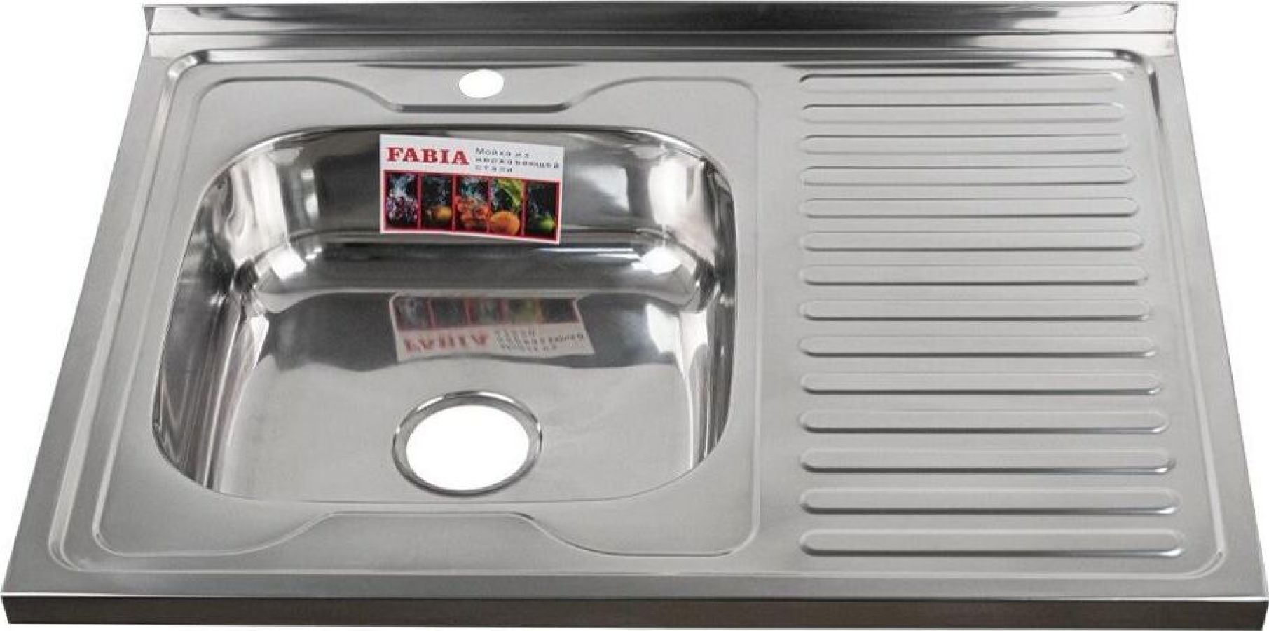 Накладная мойка FABIA из нержавеющей стали отличный вариант для кухни, она прослужит многие годы. Классическая форма и хромированный цвет гармонично впишутся в любой интерьер и никогда не выйдут из моды. Оптимальный размер с площадкой для посуды позволяет свободно мыть посуду, без страха её разбить. Мойка устанавливается на тумбочку. Практичная площадка, расположенная по центру, даёт возможность вмонтировать любую понравившуюся модель смесителя. В комплекте сифон с большой горловиной с переливом. Габаритные размеры: ширина 800 мм, длина 600 мм, глубина 160 мм, толщина стали 0,6 мм. Вес - 3,400 кг, объём - 0,02593 м3.