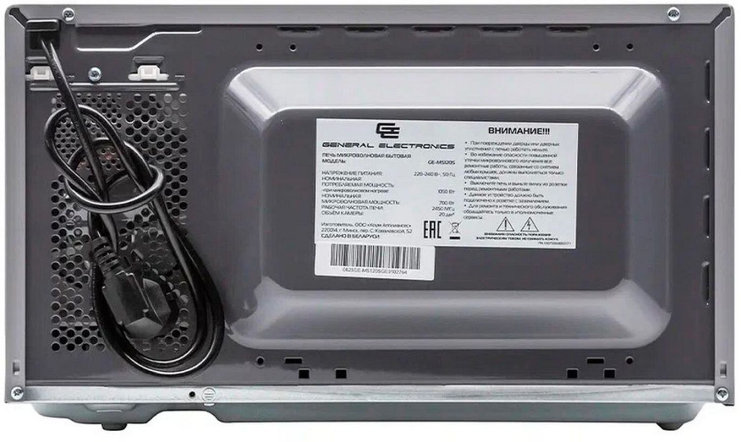 20 Литров, цвет - серебро, мощность 700W, 5 режимов мощности, механическое управление. Потребляемая мощность микроволновой печи (Вт) - 1050. Частота - 2450 MHz. Внутренний размер (ВхШхГ) (мм) - 306*304*205, размер коробки - 488*380*291. Вес (n/g) - 10.2/11.2кг