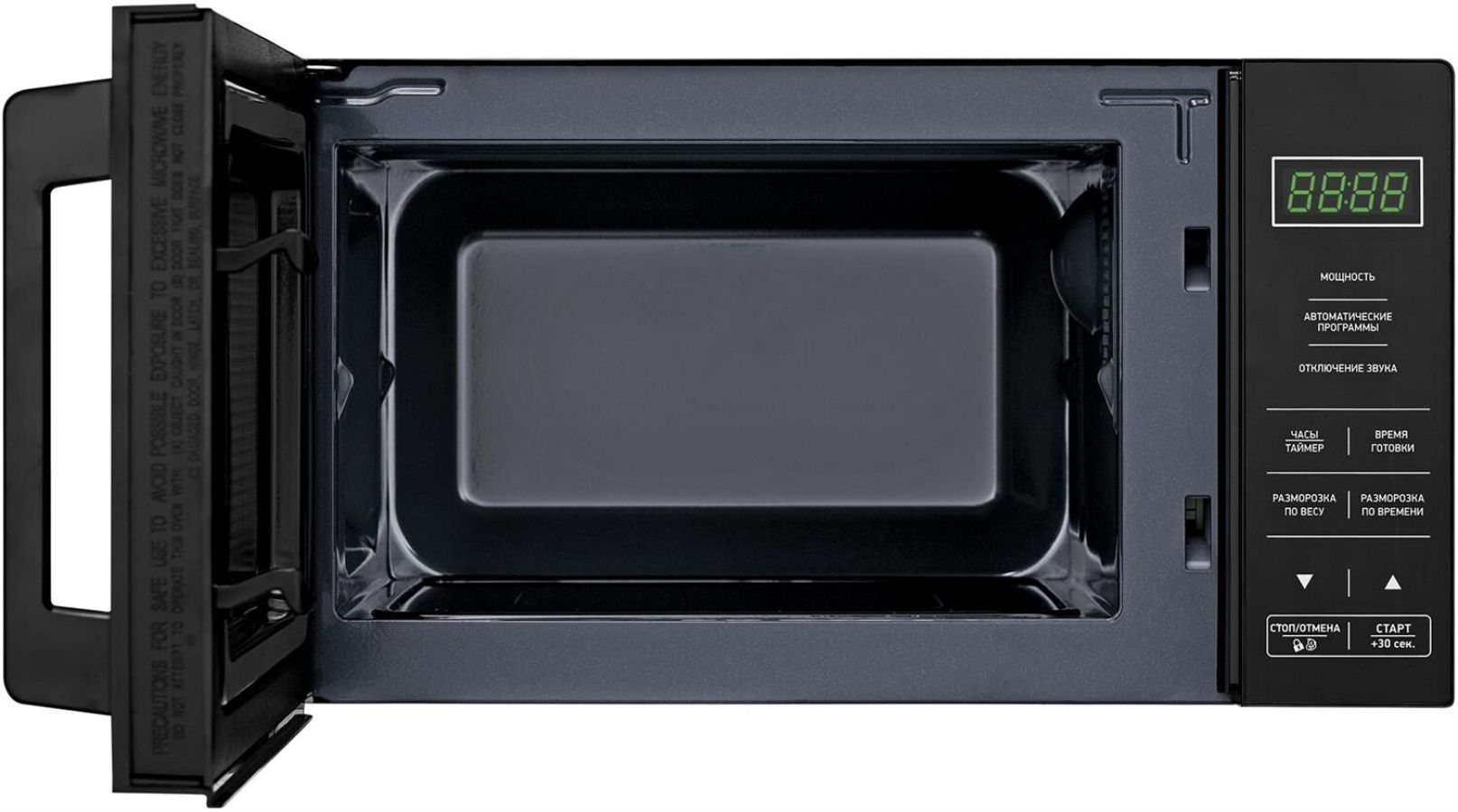 Объем камеры (л): 20. Тип управления: электронный. Мощность микроволн (Вт): 700. Тип открывания дверцы: ручка. Таймер (мин): 95. Микроволны. Цифровой дисплей. Автоматич. приготовление. Автоматич. размораживание. Функция разморозки. Встроенные часы. Режим ''защита от детей''. Таймер со звуковым сигналом. Цвет корпуса: черный. Материал передней панели: Пластик. Отделка передней панели: Пластик