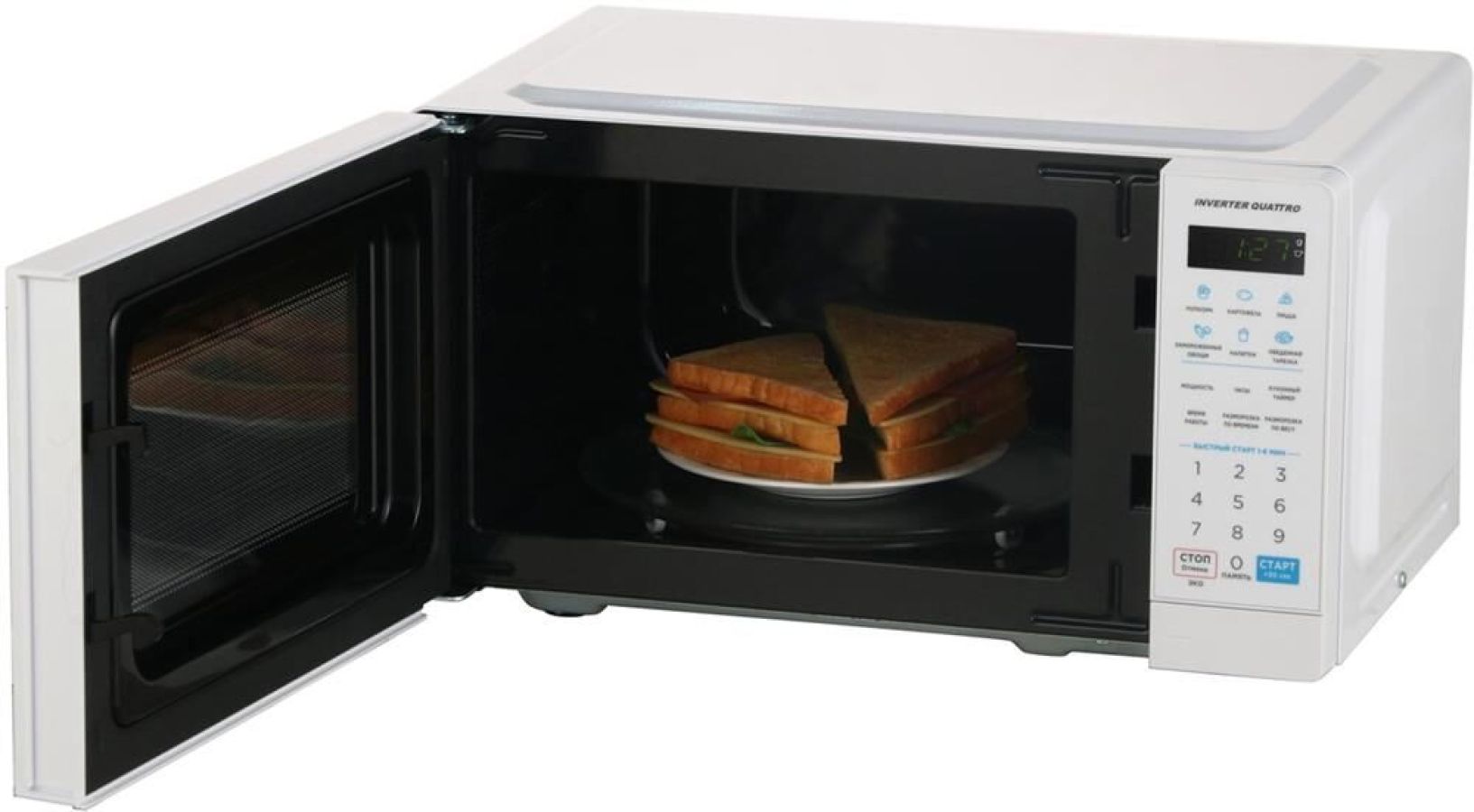 Объем 19 л Мощностьмикроволн 700 Вт Типуправления электронное Открываниедверцы кнопка Направление открытия дверцы справа-налево Особенности корпуса дисплей Управление быстрый старт, кнопка +30 секунд, регулировка мощности Количество ступеней регулировки мощности 10 шт Внутреннее покрытиекамеры эмаль легкой очистки Диаметр поворотногостола 245 мм Количество программ 6 Длина кабеля питания 1 м Цвет белый