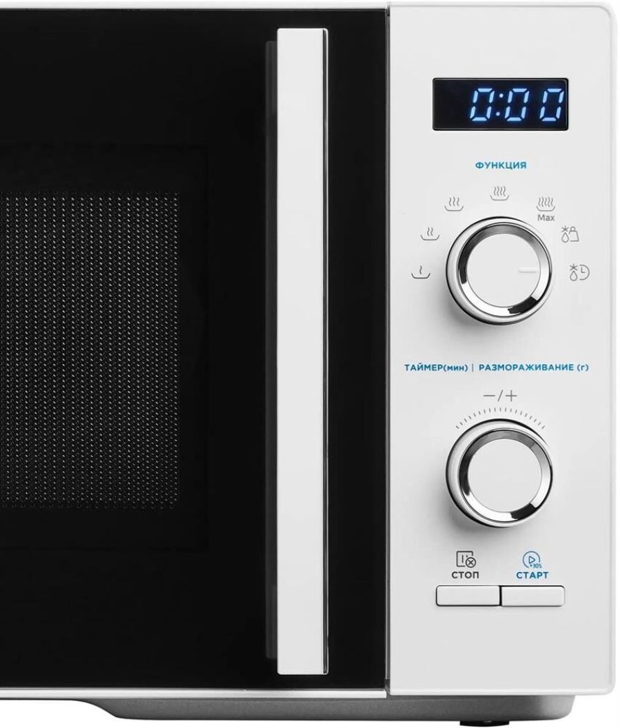 Объем 25 л Мощностьмикроволн 800 Вт Типуправления электронное Открываниедверцы ручка Направление открытия дверцы справа-налево Особенности корпуса дисплей Управление кнопка +30 секунд, регулировка мощности Количество ступеней регулировки мощности 5 шт Внутреннее покрытиекамеры эмаль Цвет белый