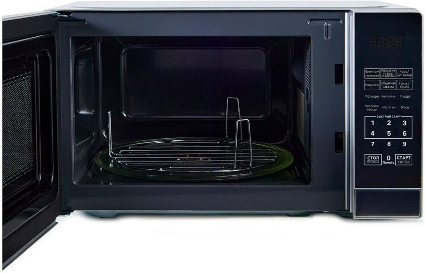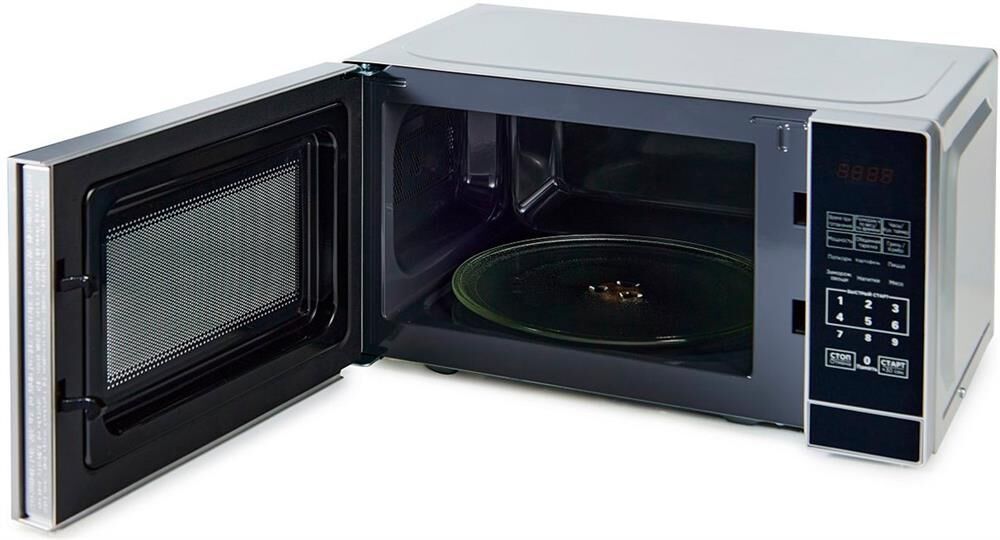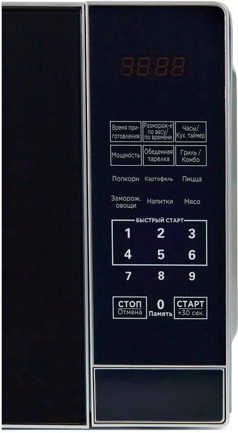 Тип: с грилем. Внутреннее покрытие камеры: эмаль. Инверторное управление мощностью: нет. Мощность микроволн: 700 Вт. Объем: 20 л. Диаметр поворотного стола: 25.5 см. Количество автоматических программ: 7 шт. Автоматическая разморозка: есть. Мощность гриля: 1100 Вт. Тип гриля: кварцевый. Защита от детей: да. Открывание дверцы: кнопка. Дверца: боковая. Поворотный стол: есть. Дисплей: есть. Тип управления: электронное. Таймер: да.