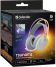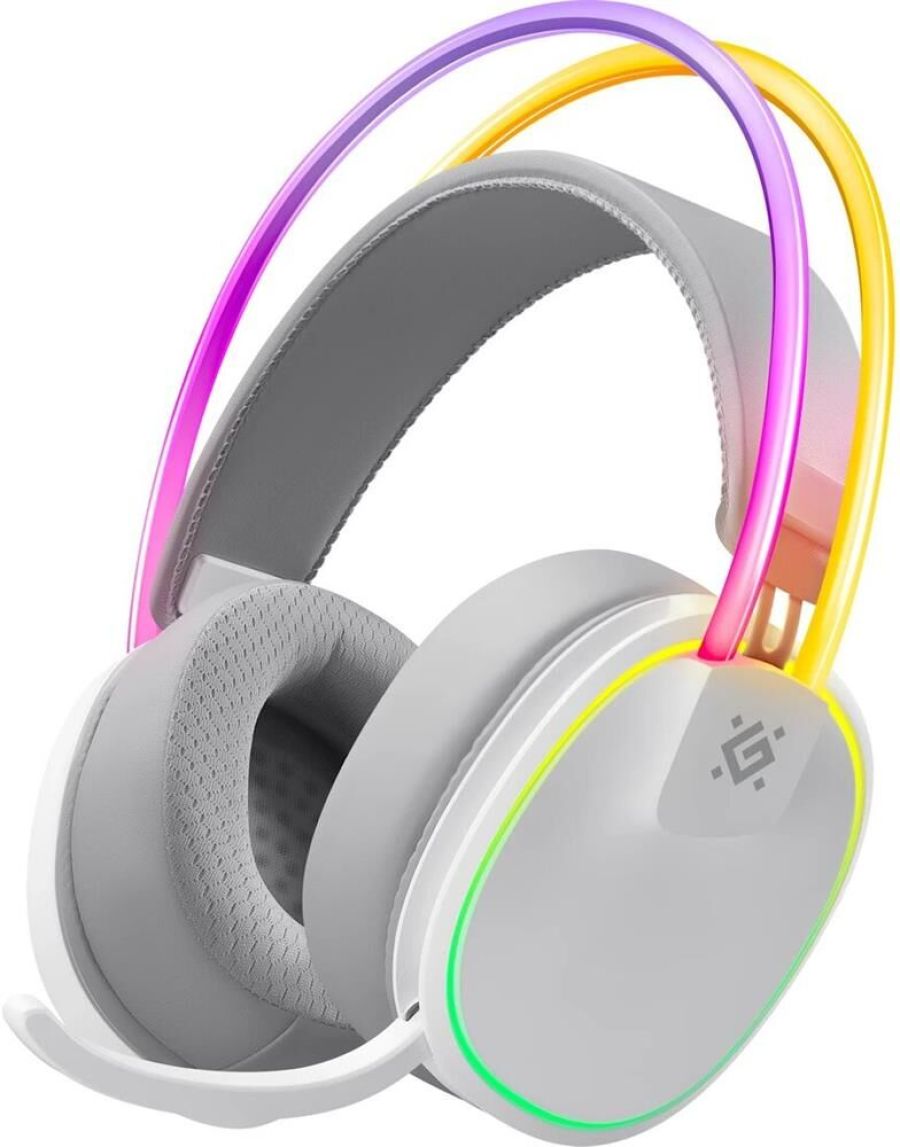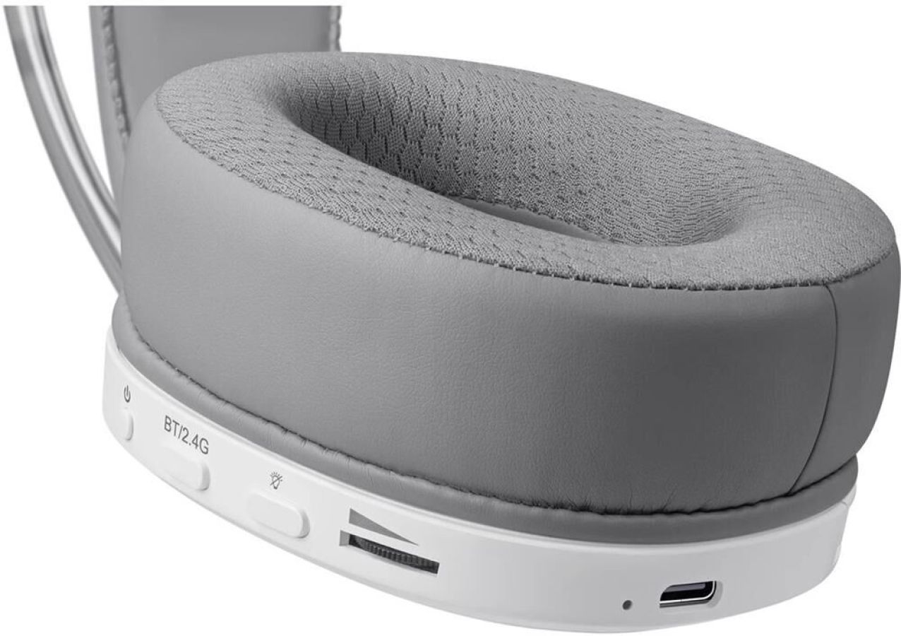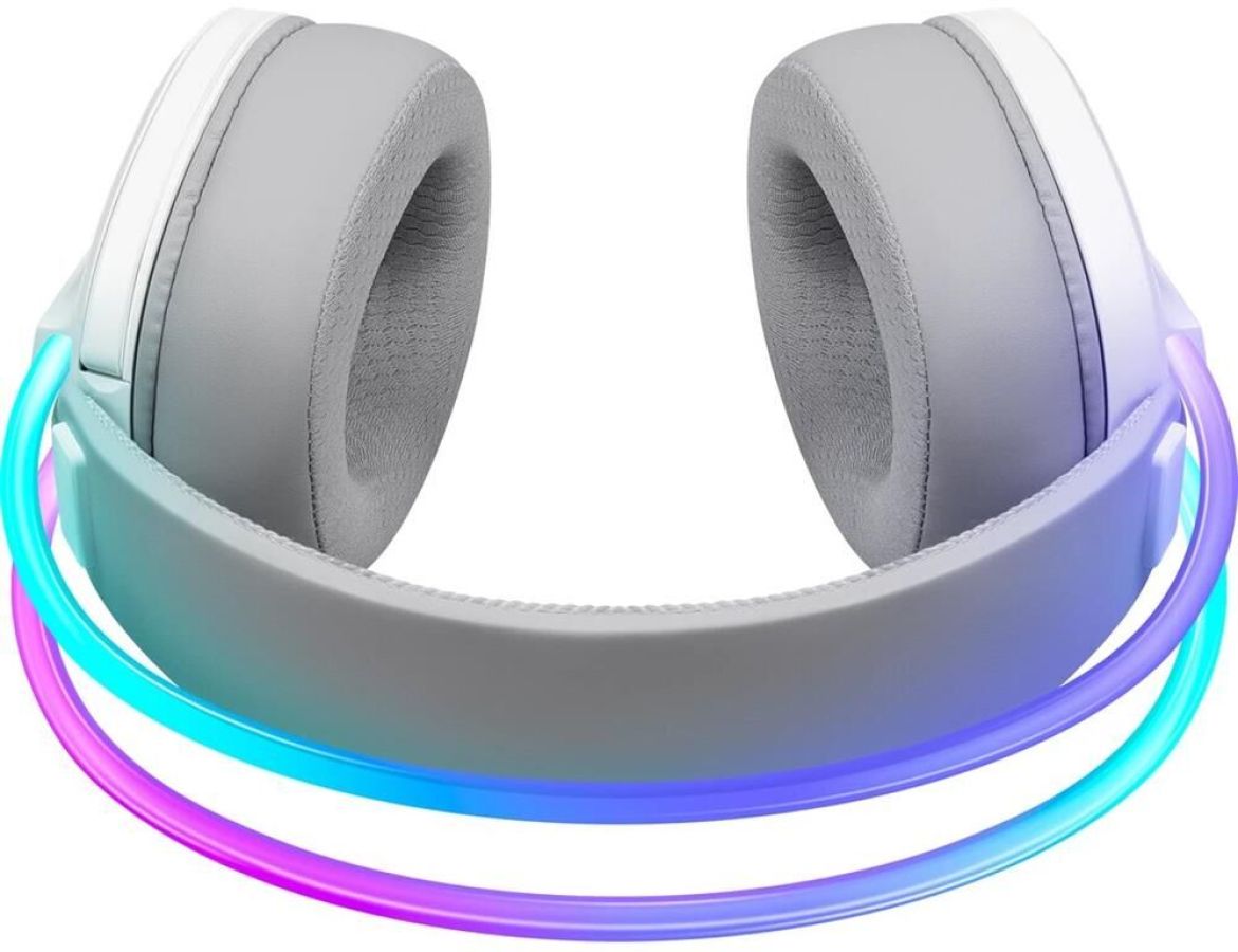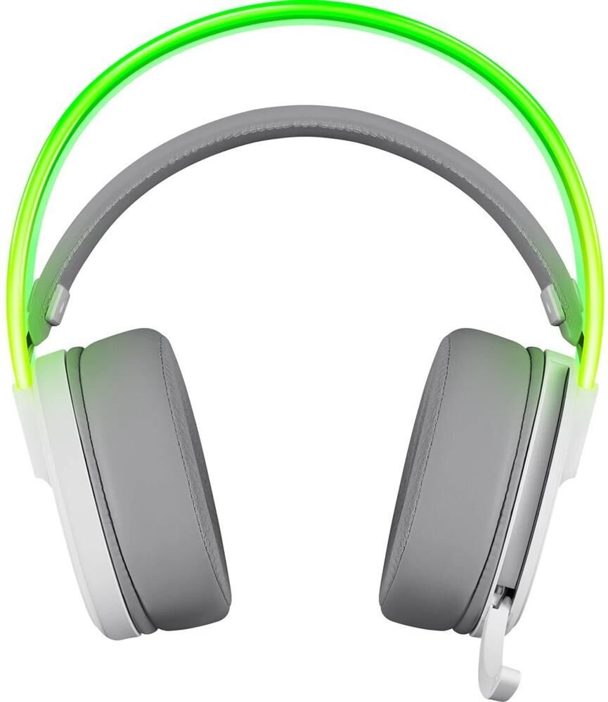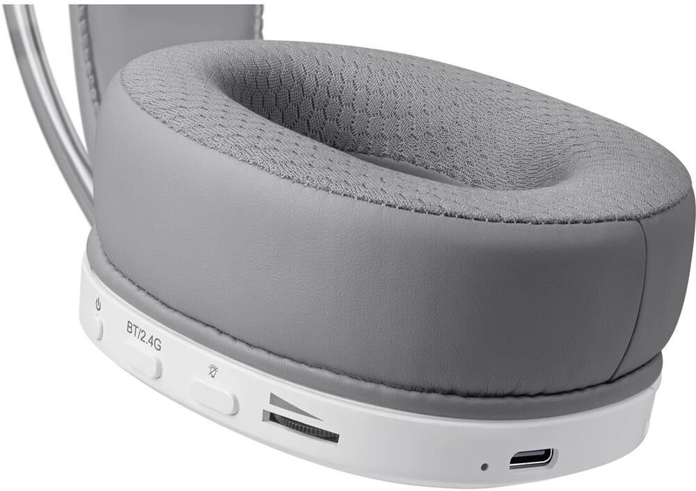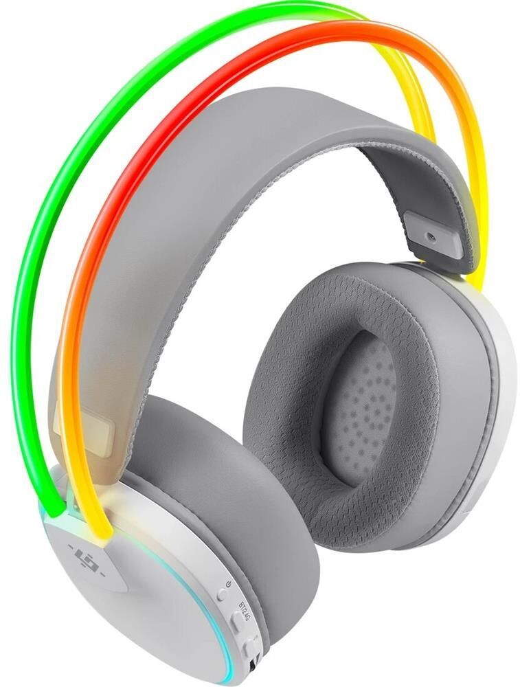 Стильная игровая гарнитура с проводным и двумя вариантами беспроводного подключения (BT и 2.4G). RGB подсветка, время работы до 40 часов, прочная конструкция с металлическим основанием оголовья.