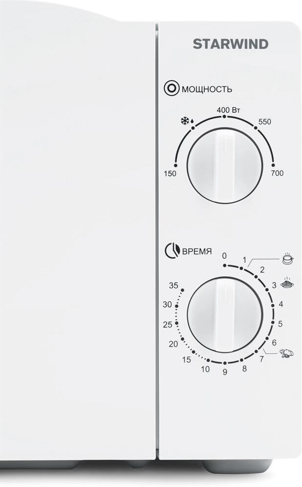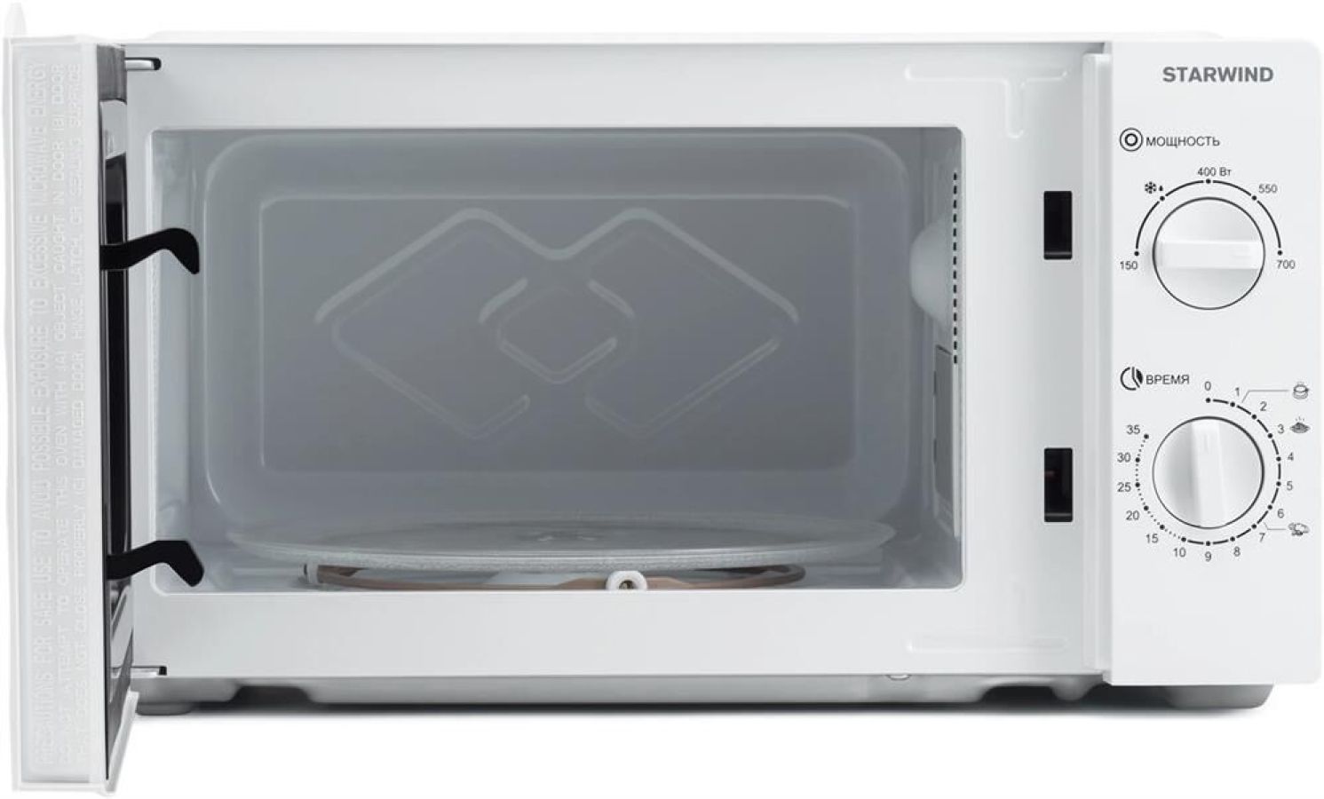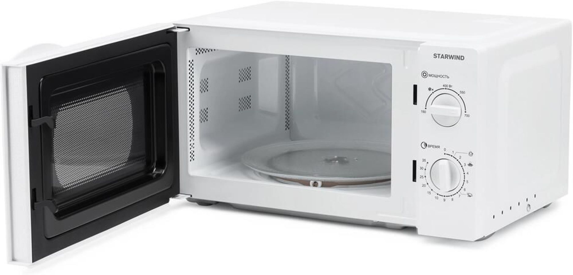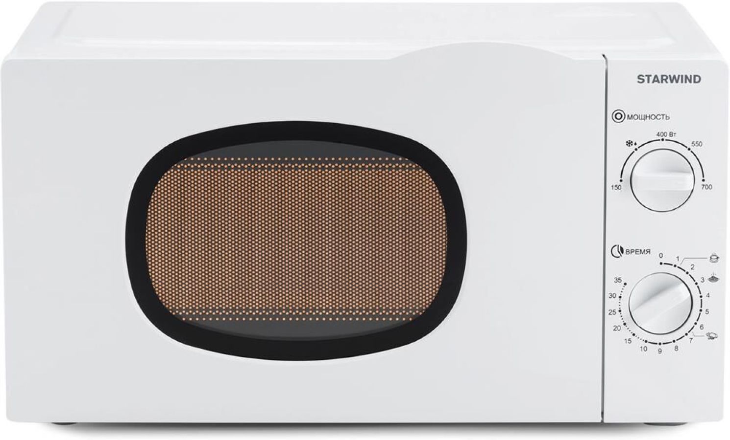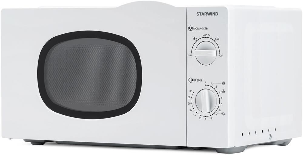 Объем 20 л; Мощность 700 Вт; Сигнал об окончании готовки; Тип управления: механический; Регулировка мощности; Таймер на отключение, максимальное время 35 мин; Автоматическая разморозка; Цвет: белый