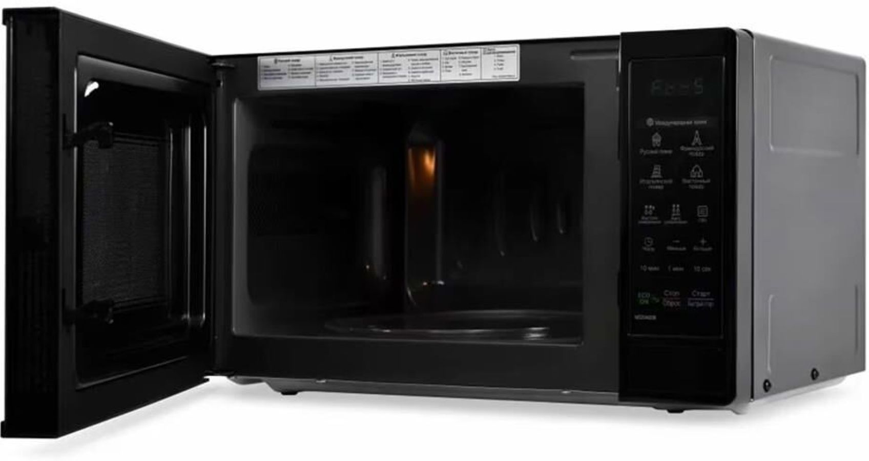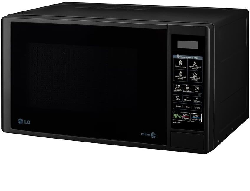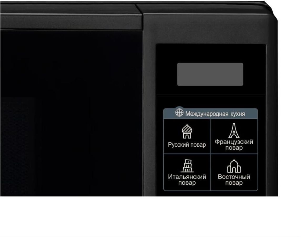 Объем: 20 л, Выходная мощность: 700 Вт, Дверца: черная, Корпус: черный, Размер поворотного столика (мм): 245, Габариты корпуса (мм) (Ш x В x Г): 455 x 284 x 312, Антибактериальное покрытие EasyClean, I-wave Технология эффективного распределения микроволн, Автоматические Рецепты традиционных блюд Русской (8), Французской (8), Итальянской (8), Восточной (8) кухни - 32 программы