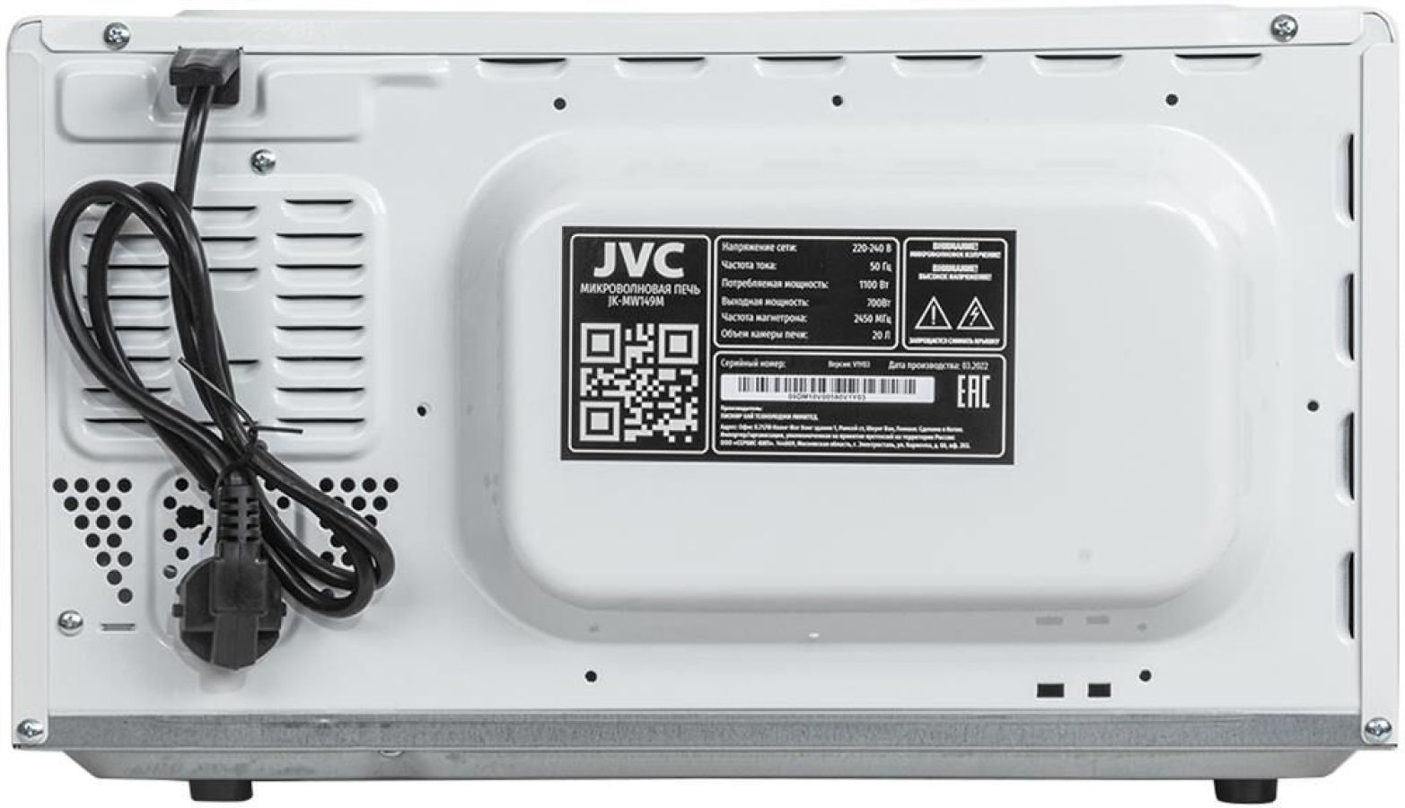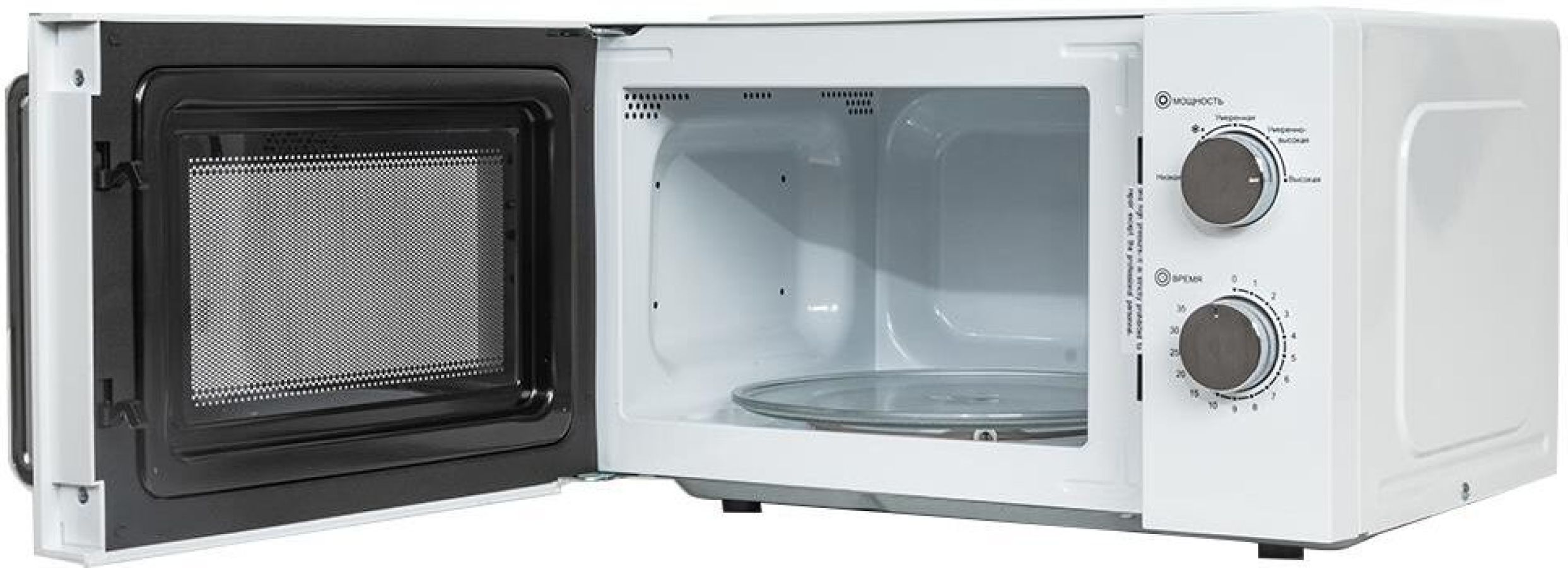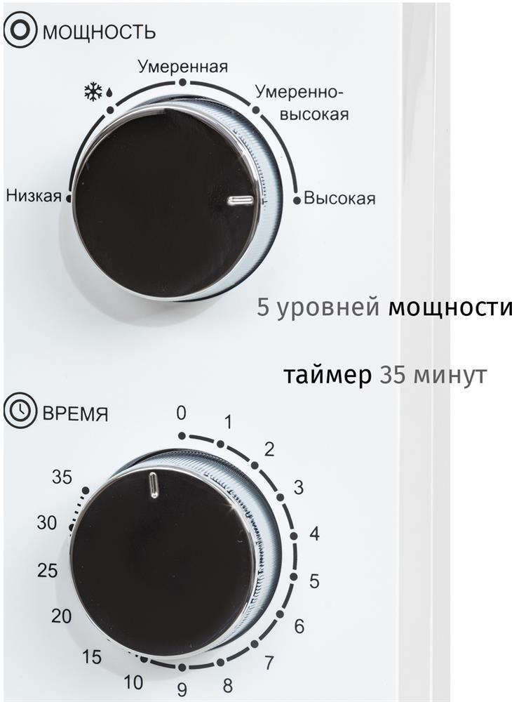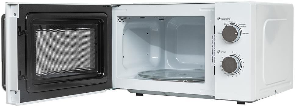 Цвет товара белый Объем 20 л Мощность микроволн 700 Вт Внутреннее покрытие камеры эмаль Переключатели поворотные механические ШхВхГ 45х26.10х35 см