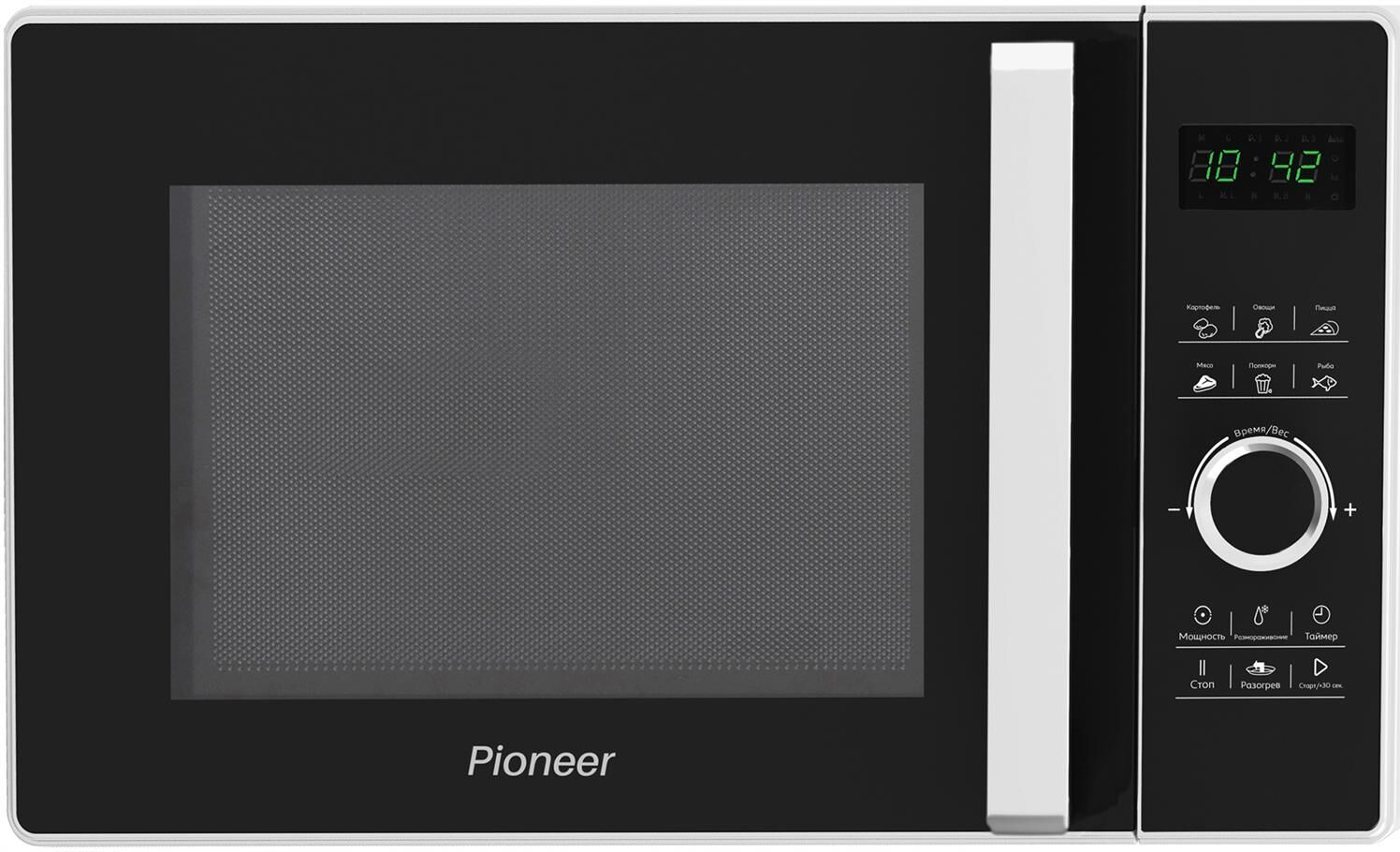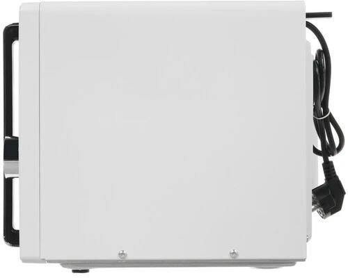 Микроволновая печь, внутренний объем: 23 литра, выходная мощность печи: 800 Вт, тип управления: сенсорный , диаметр поворотного стола: 270 мм, количество уровней мощности: 5, количество программ автоматического приготовления: 6, автоматическое размораживание, таймер: 60 минут, блокировка от детей, тип открывания дверцы: ручка, сигнал окончания приготовления, цвет панели и дверцы - черный, белый
