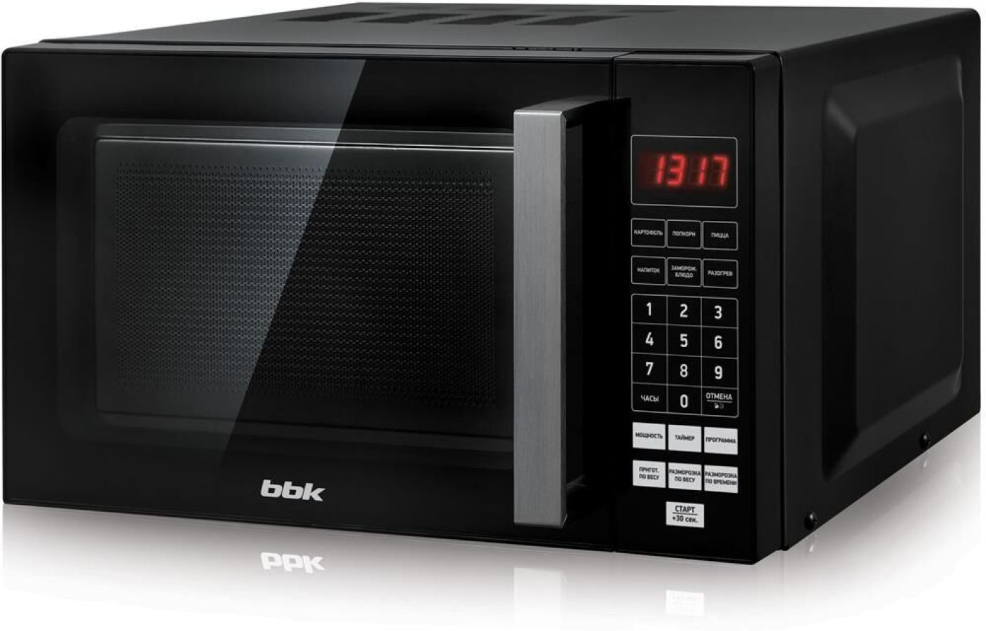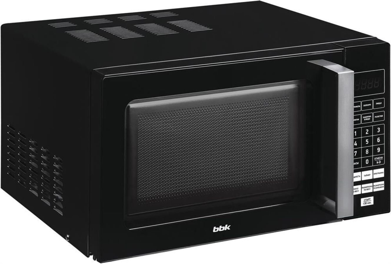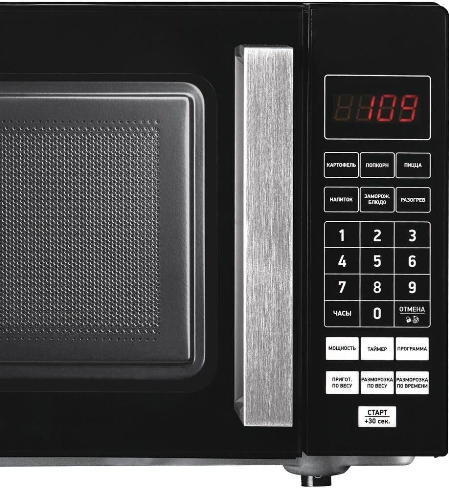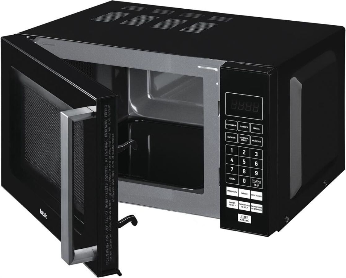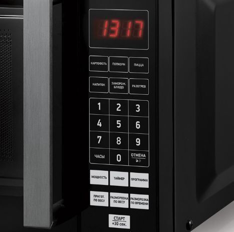 Внутренний объем: 20 л Тип управления: электронное Мощность микроволн: 700 Вт Количество уровней мощности: 6. Открывание дверцы: ручка. Габаритные размеры: 457x271x383 мм. Вес: 10.5 кг. Цвет корпуса: черный .