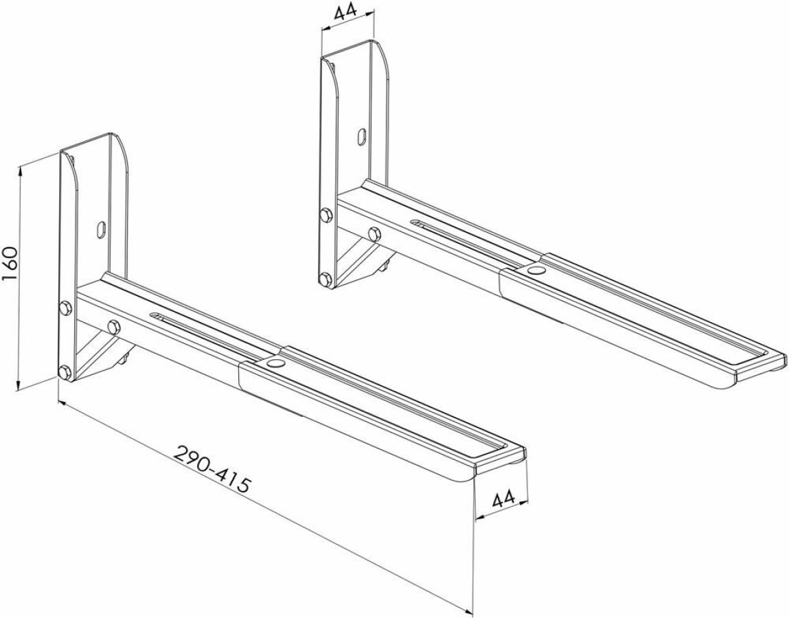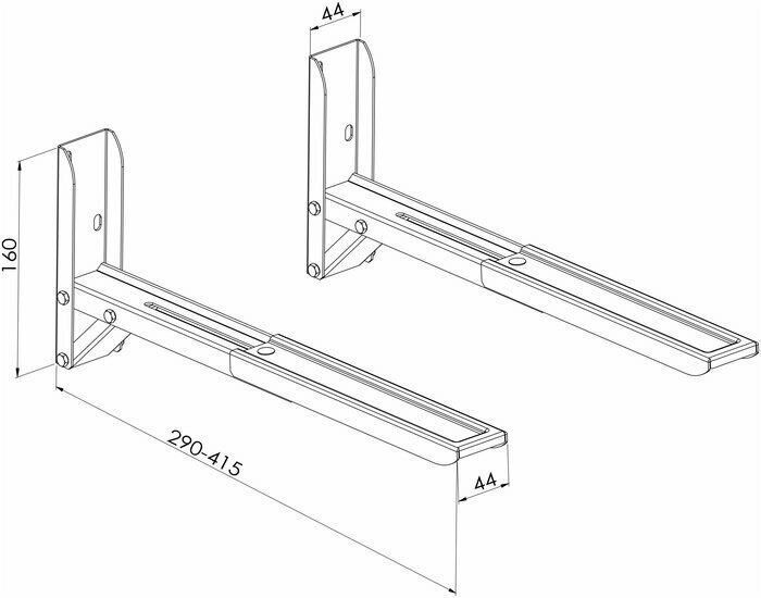 Стальной кронштейн для настенного крепления микроволновых печей и печей-гриль. Высота крепления 160 мм. Регулируемый вылет от стены 290-415 мм. до30кг.