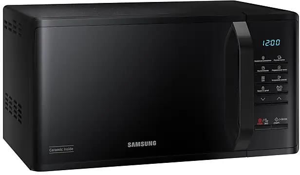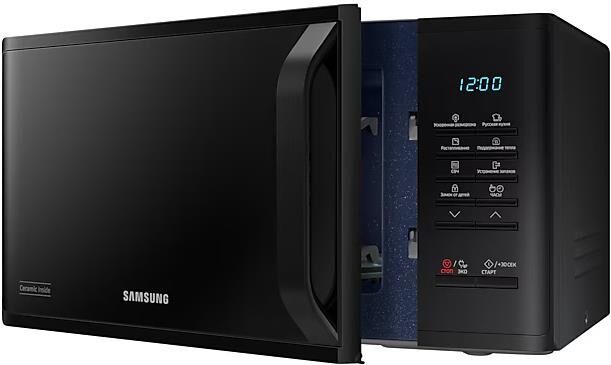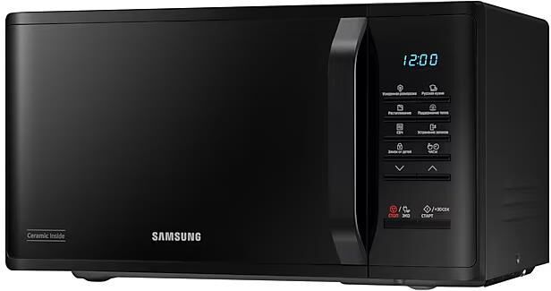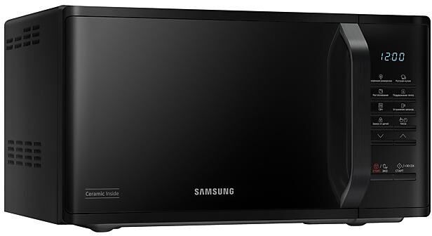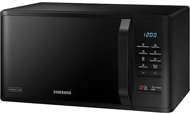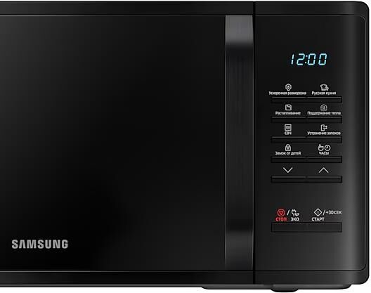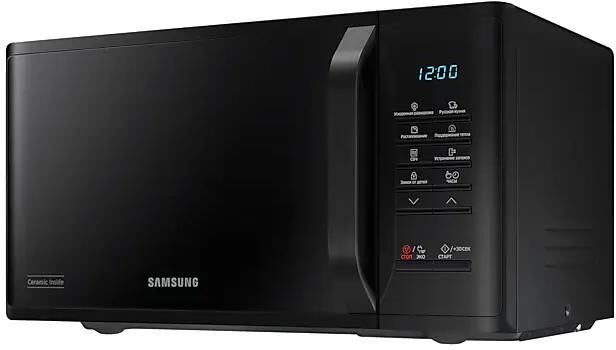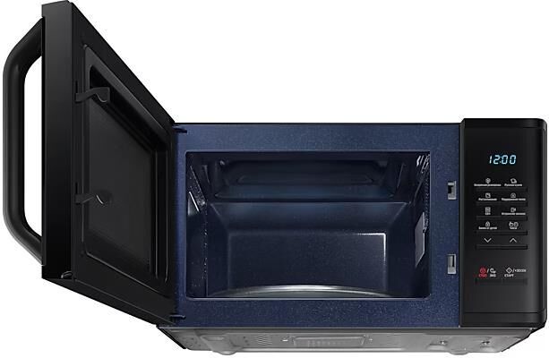 соло (без гриля и конвекции), объем 23 л, мощность микроволн 800 Вт, автоматические режимы: разморозка, приготовление, система равномерного распределения микроволн, размеры (ШxВxГ): 49x27x37 cм, цвет корпуса: черный