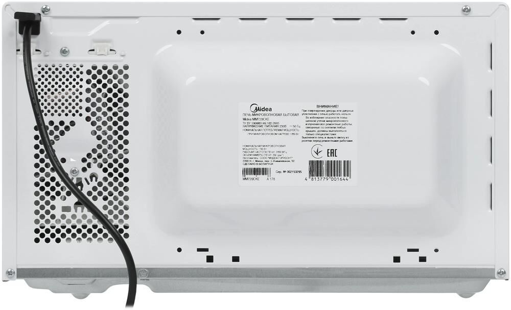 20 л, мощность микроволн 700 Вт, Цвет белый управление механическое, количество уровней мощности 5, тип открывания двери - скрытая ручка, поворотный стол 255 мм, таймер, размораживание по весу, больше/меньше , вес нетто 10,2 кг, вес в упаковке 11,2 кг, Размеры (ШxГxВ) 439.5*330*258.2 мм, Размеры в упаковке (ШxГxВ) 488*380*291 мм.