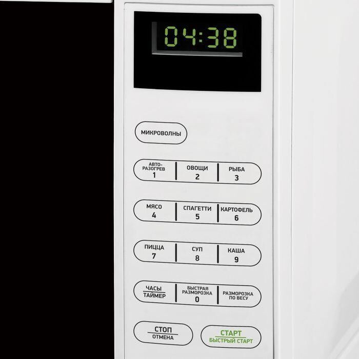Объем 20 литров гриль, сенсорное управление, 700 Вт, автоматические программы приготовления вынесены на отдельную панель с электронным управлением, 2 режима – разморозка по весу /по времени