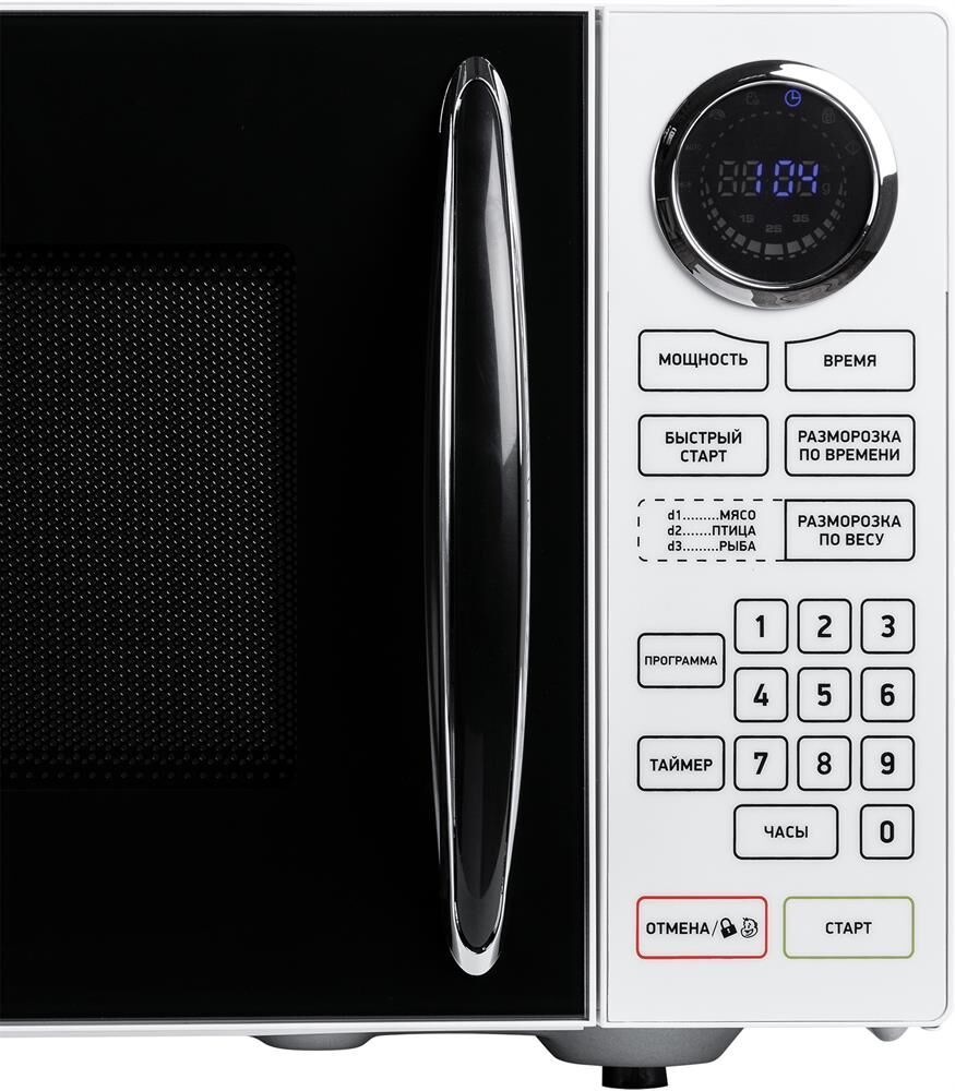 Энергопотребление 1400 Вт Внутренний объем 23 л Диаметр поддона 27 см Гриль нет Мощность гриля нет Конвекция нет Комбинированные режимы нет Внутреннее покрытие камеры эмалированная сталь Режимы и функции Автоматические программы приготовления есть Инверторное управление мощностью нет Автоматическая разморозка есть Автоматический разогрев нет Отключение звукового сигнала нет Отсрочка старта есть Панель управления Вид управления сенсор Блокировка от детей есть Дисплей есть Таймер 99 мин Часы есть Дополнительная информация Дверца навесная Открывание дверцы ручка
