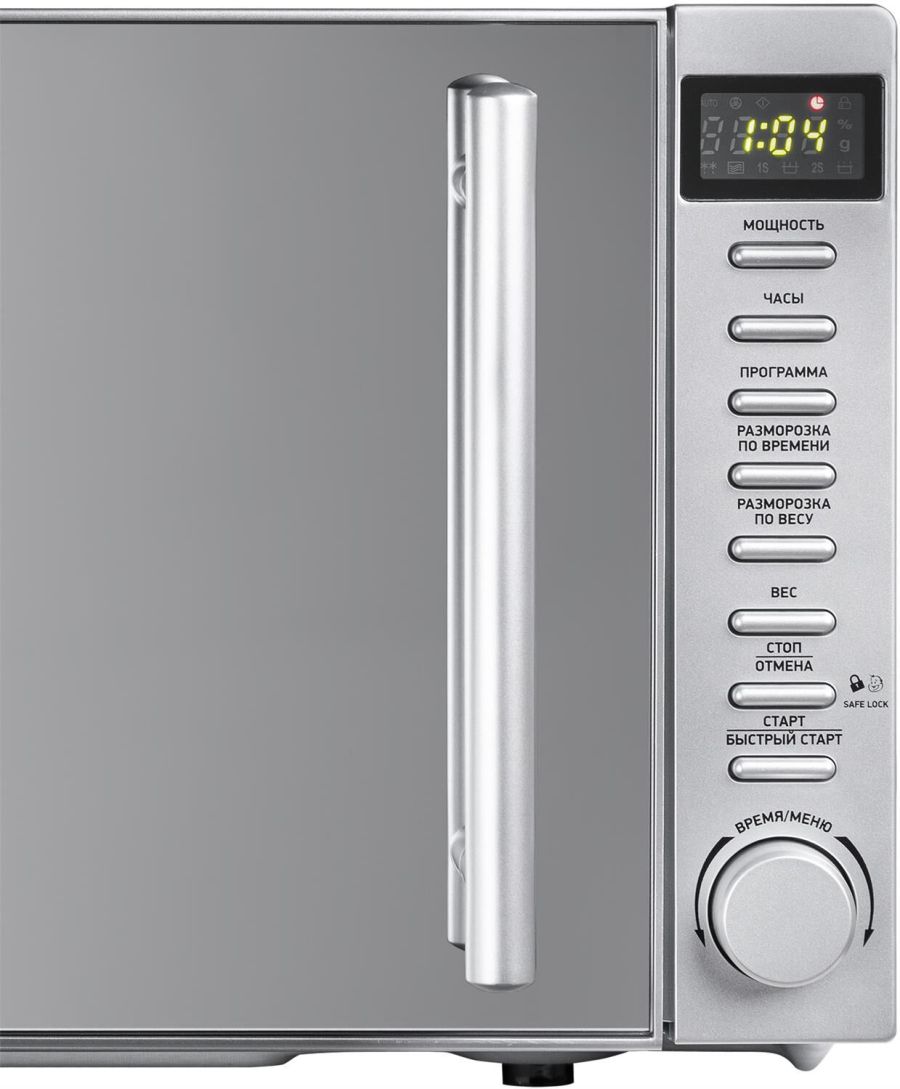 Объем: 20 л. Расположение: отдельно стоящая. Цвет корпуса: серебристый. Мощность микроволн: 700 Вт. Количество уровней мощности 5. Внутреннее покрытие камеры эмаль. Подсветка камеры. Открывание дверцы ручка. Дверца навесная. Автоматическая разморозка. Автоматическое приготовление. Переключатели тактовые/кнопочные. Блокировка от детей. Звуковой сигнал отключения.