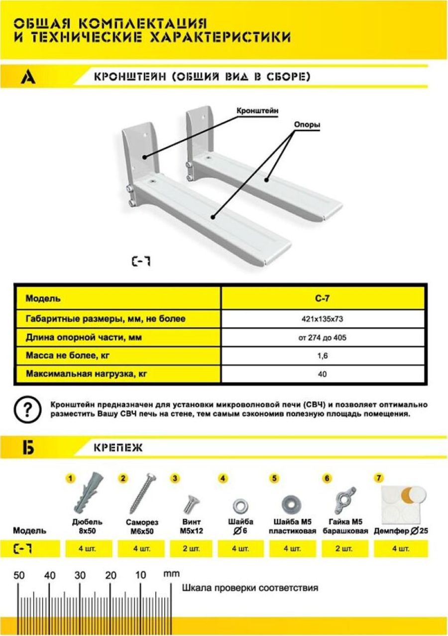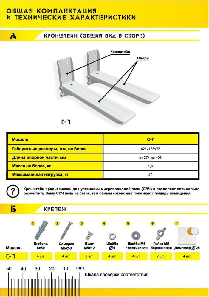 Кронштейн С 7 используется для крепления микроволновой (СВЧ) печи. Нагрузка макс: 40 кг. Цвет: белый. Упаковка: мм. Масса: 1,57 кг. Опоры-основания регулируются от 291 мм до 421 мм.