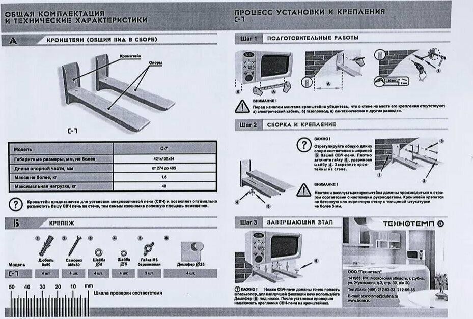 Комплектация: Сборные части кронштейна, монтажный комплект, Инструкция по установке
