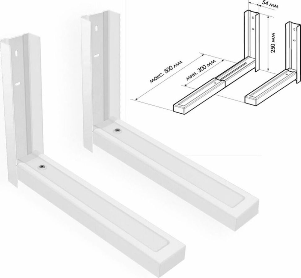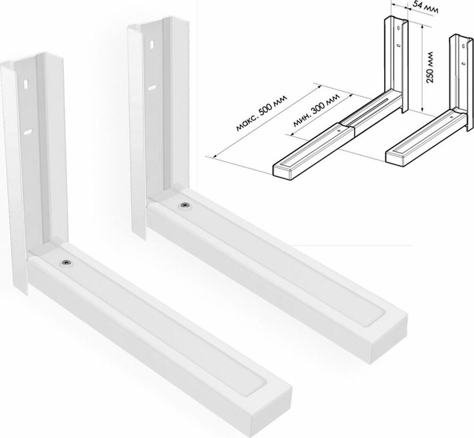 Кронштейн С 2 используется для крепления микроволновой (СВЧ) печи. Нагрузка макс: 40 кг. Цвет: белый. Упаковка: 85*310*360 мм. Масса: 2,57 кг. Позволяет выдвинуть основания от 300 мм до 500 мм.
