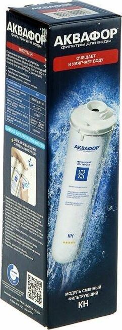 АКВАФОР КН сменный модуль для умягчения воды. Используется в системах АКВАФОР с отдельным краном. Умягчает воду, решая проблемы накипи и хлопьев в кипяченой воде. Модуль заменяется вместе с корпусом для бактериостатичности, но может быть регенерирован поваренной солью.
