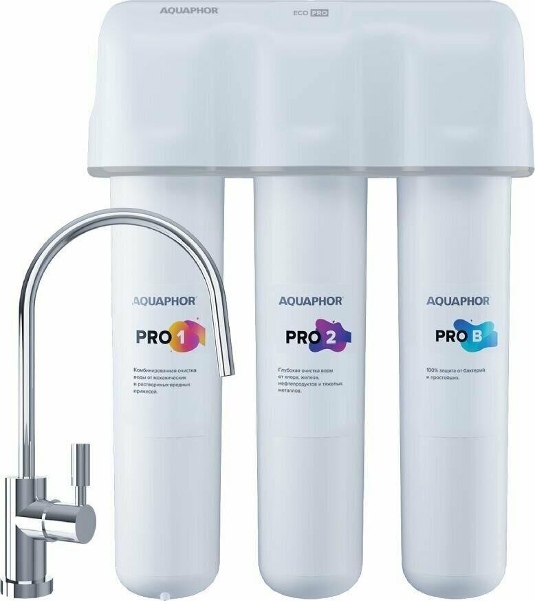 Cистема для глубокой очистки воды от химических примесей, бактерий, ржавчины и других растворенных и механических загрязнений.Многоступенчатая фильтрация ECO Pro включает инновационный модуль предочистки 2 в 1 с увеличенным ресурсом, сорбционные карбонблоки во всех трех картриджах и ультрафильтрационную половолоконную мембрану. Система оснащена новым коллектором с дополнительным уровнем безопасности.Абсолютная антибактериальная защита обеспечивается без применения химических бактерицидов. На стадии ультрафильтрации половолоконная мембрана удаляет бактерии и цисты микроорганизмов, некоторые из которых устойчивы к хлору и кипячению. Модель ECO Pro cохраняет исходный минеральный состав воды.