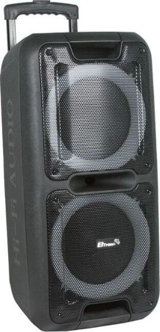 "Режимы воспроизведения: - Bluetooth - FM - Внешний накопитель - Aux Мощность: - RMS 100 Ватт - PMPO 1000 Ватт - Частотный диапазон: 50Hz-20KHz - Сигнал/Шум: 70dB - Разделение: 50dB Питание: - 220V - Встроенный аккумулятор 12В 4.5А (до 5 часов работы) Разъемы: - USB - SD - AUX - Jack 6.3 мм (микрофон-гитара) 1 шт. Комплектация: - Колонка - Блок питания - Беспроводной микрофон - 2 шт - Пульт ДУ - Инструкция Размеры упаковки: Ширина - 40 см Высота - 75 см Глубина - 34 см Вес нетто - 12 кг Вес брутто - 14,5 кг Дополнительно: LED подсветка Регулировка громкости микрофона Дисплей Приоритет микрофона Регулировка эхо микрофона Удобная ручка для переноски Разъем для установки на штатив"