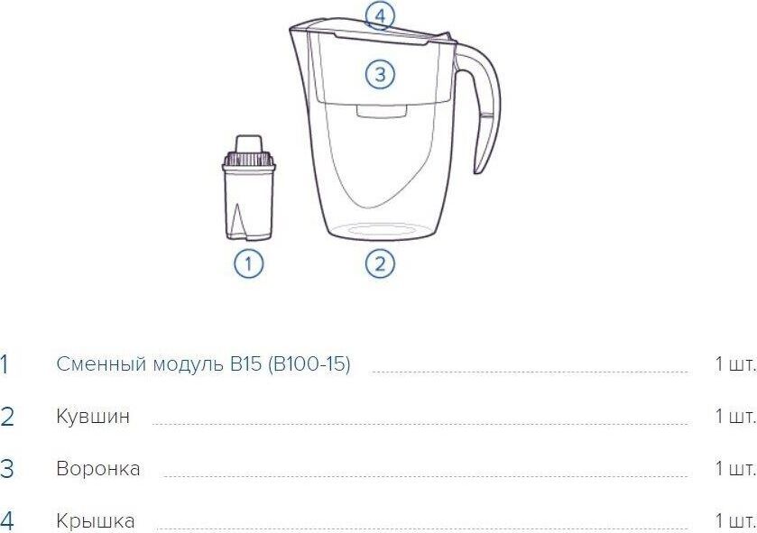 комплектация: сменный модуль B15 (B100-15), крышка, воронка, кувшин