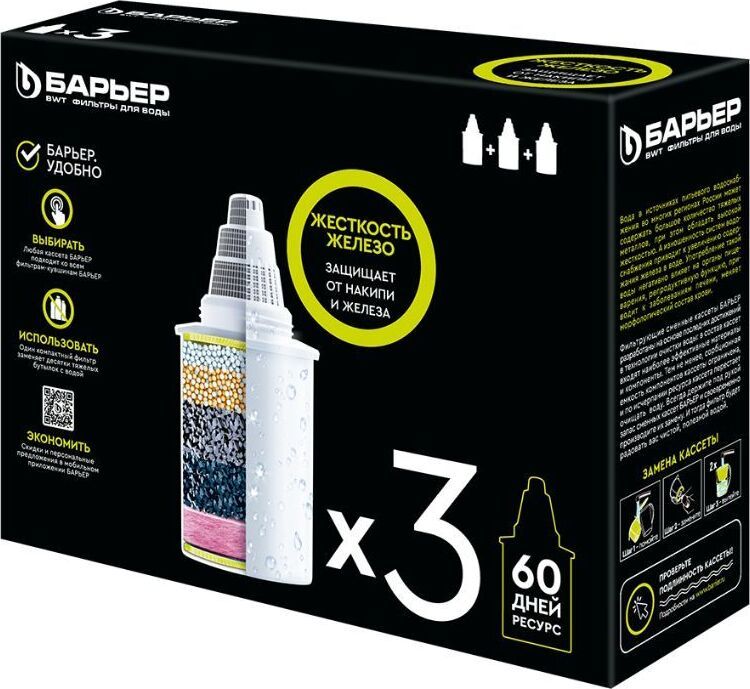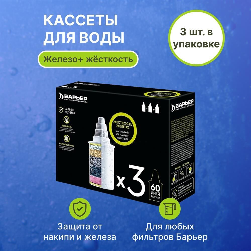 Кассеты серии «Жесткость Железо» предназначены для комплексной очистки воды. Они убирают тяжелые металлы, железо, хлор. Одновременно происходит снижение показателей жесткости, что минимизирует образование накипи. Набор укомплектован 3 кассетами для фильтров.