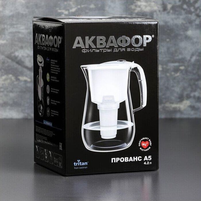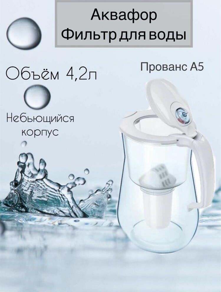 Кувшин «Прованс А5» с модулем А5 в комплекте. Комплектуется модулем А5. Технология «выдувного кувшина» с уникальным кантри-дизайном. Самый большой объём кувшина – 4,2 литра. Крышка Flip-top для быстрого набора воды. Умный индикатор ресурса. Противоударное ЭКО – стекло. Подходят все стандартные модули АКВАФОР серии В100-5.