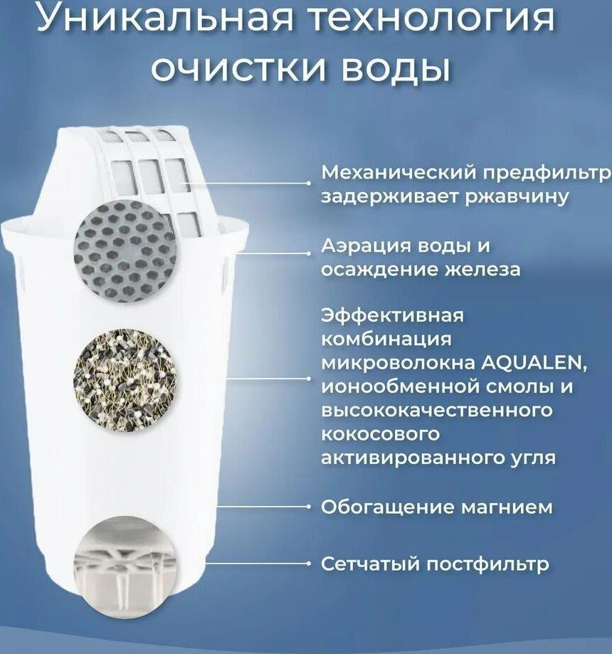 Ресурс 300л. Увеличенный ресурс по хлору.Удаление избыточной жесткости. Удаляет из воды хлор, фенол, тяжелые маталлы, железо, пестициды.