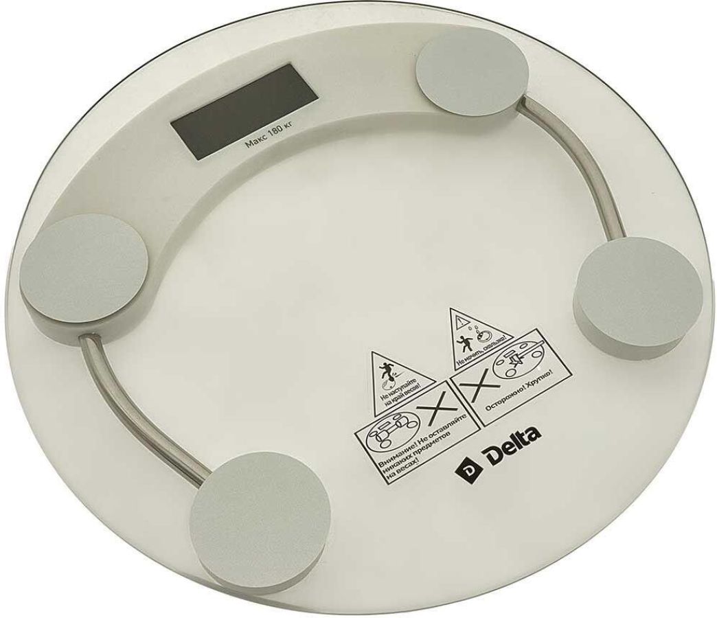 Весы напольные электронные. Платформа из закаленного прочного стекла, Диапазон измерений 3-180 кг, Интервал измерений 50 г, Номинальное напряжение 3 В, Индикатор перегрузки весов, Индикатор уровня заряда батареи, Автообнуление, Автоотключение, Выбор единицы измерения (килограмм/фунт), Противоскользящие ножки, Электропитание: батарея тип R03 AAA - 2 штуки, в комплекте.