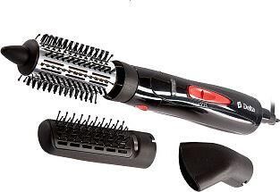 Параметры Номинальная потребляемая мощность 1000 Вт Описание Устройство предназначено для сушки и укладки волос в бытовых и аналогичных условиях Корпус из термостойкого пластика Цвет: черный с розовым Три сменные насадки: - круглая щетка со смешанной щетиной - щетка-расческа - концентратор Световой индикатор работы Петелька для подвешивания Защита шнура от перекручивания - вращение шнура на 360º Три режима работы Функция «Холодный воздух» Защита от перегрева Упаковка: цветная коробка