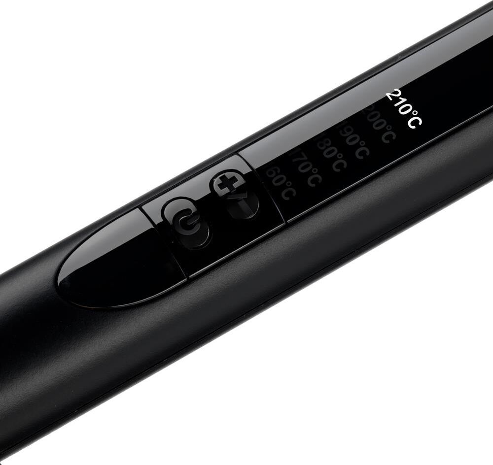 Щипцы для завивки волос, Нагрев до 210°C , Овальная форма идеально подходит для создания легких волн, Усовершенствованная система нагрева, Ультрогладкое покрытие нано-кварц-керамик, Удлинённая рабочая поверхность 140 мм, Быстрый нагрев, 6 температурных режимов 160⁰C - 210°C, Автоотключение, Вращающийся шнур 2.5 м, Термозащитный коврик, Термозащитные перчатки. Цвет Черный