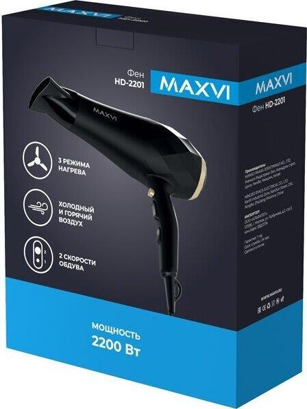 Мощность 2200 Вт, 3 режима нагрева, холодный и горячий воздух, 2 скорости обдува.