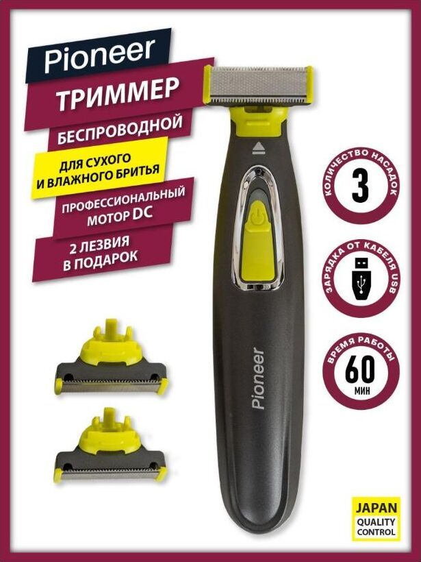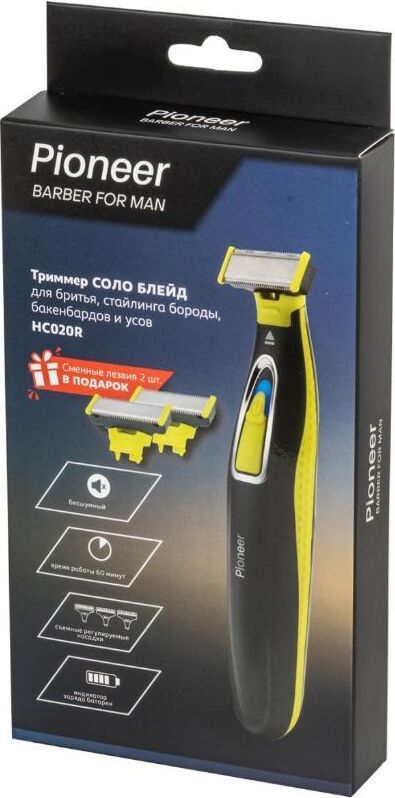 Триммер СОЛО БЛЕЙД Pioneer HC020R для бритья, стайлинга бороды, бакенбардов и усов Мощность 5 Вт Профессиональный мотор Светодиодный индикатор Стальные лезвия Литиевая батарея 300 мА Время заряда батареи 90 мин. Время работы 60 мин. Бесшумная Индикация
