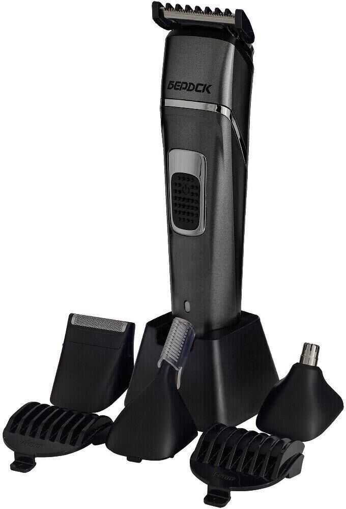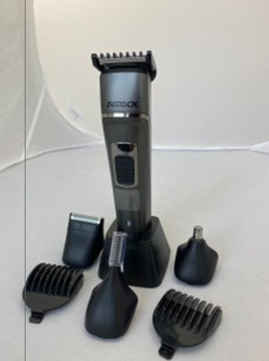 В комплекте триммера 4 головки: головка для стрижки с 3 насадками-гребнями (3/6/9мм), головка для бритья, головка для носа и ушей, головка с вертикальнам триммером. Работает от аккумулятора и от сети. Время полной зарядки аккумуляторов - 1,5 часа. Длительность рабочего цикла без подзарядки 1 час. Степень влагозащищенности IPX5 - погружать в воду нельзя, можно только помыть головку под струёй воды. Прибор работает от Li-ion аккумуляторов постоянного тока 3,7В, 600mA. Номинальная потребляемая мощность не более 4Вт., Зарядка и хранение триммера осуществляется на подставке. Зарядка аккумулятора требуется, если при включении прибора начинает мигать красный индикатор зарядки. Длина шнура - 1,85м.