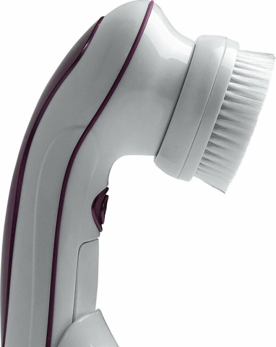Элементы питания типа АА 2 шт. (в комплект не входят) 2 режима работы - бережное очищение - глубокое очищение 4 насадки: - насадка-спонж для нанесения кремов и тональной основы - ультрамягкая насадка-щетка для чувствительной кожи - насадка-щетка для нормальной и смешанной кожи - насадка-щетка для глубокого очищения пор Защита от водяных брызг и струй с любого направления Подставка для прибора в комплекте