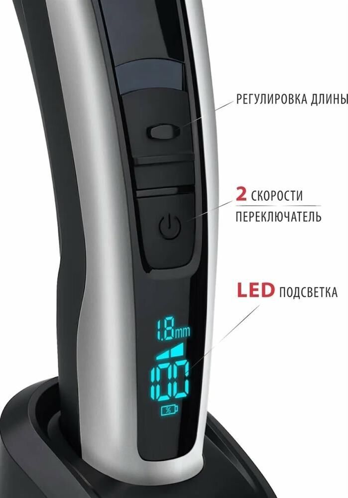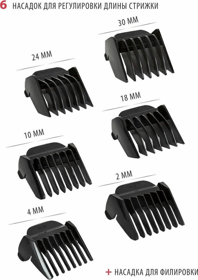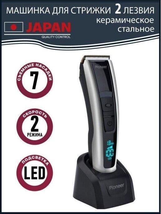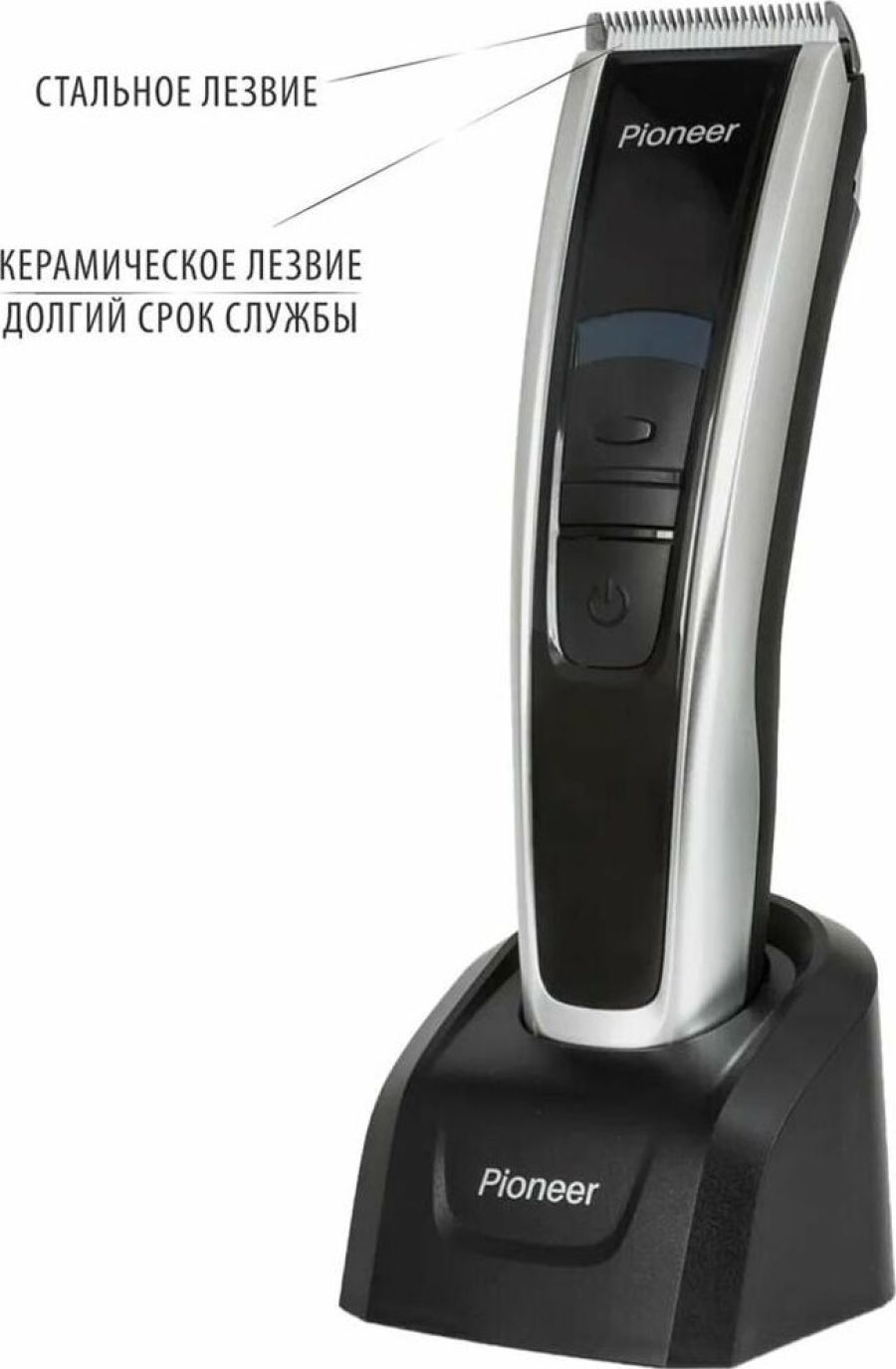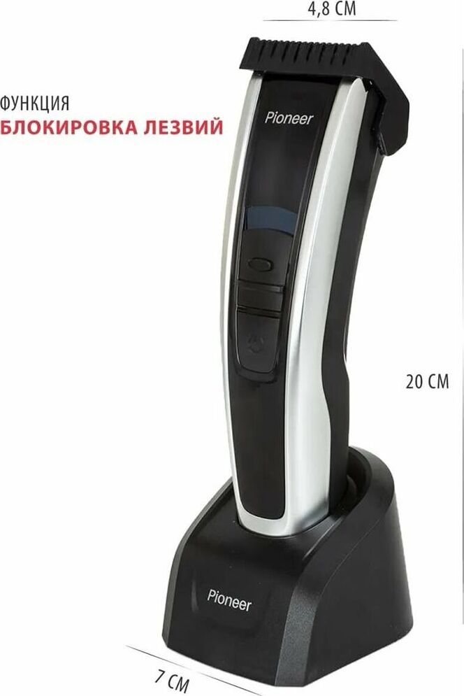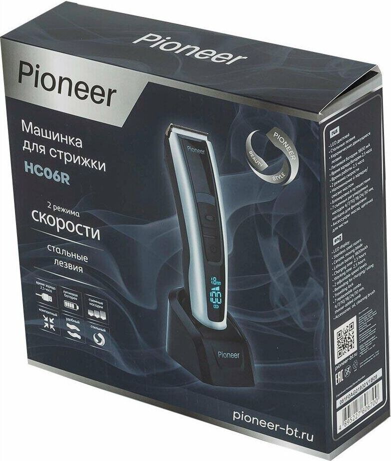 PIONEER HC06R Количество скоростей: 2 Тип питания: литиевая батарея 1800 мАч Время непрерывной работы, мин.: 150 Время зарядки аккумулятора, час.: 2,5 Материал лезвий: сталь и керамика Индикаторы: низкого заряда, необходимости использования масла Дисплей: есть Насадки: 7 съемных регулируемых насадок 4/7/10/18/24/30 мм, насадка для филировки Комплектация: машинка для стрижки, съемные насадки, адаптер питания, масло, чистящая щеточка, гарантийный талон, инструкция на русском языке Цвет: черный с серебристым Размер упаковки, см. (ВхШхГ): 22.2x23x6.5 Вес в упаковке, кг.: 0.65 Электропитание, в., Гц.: 220-240, 50 Особенности: блокировка в путешествии