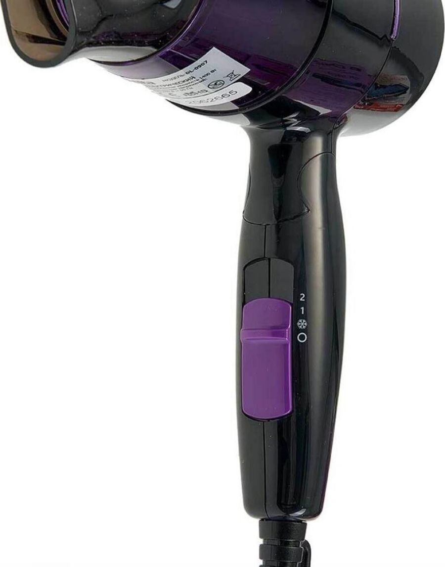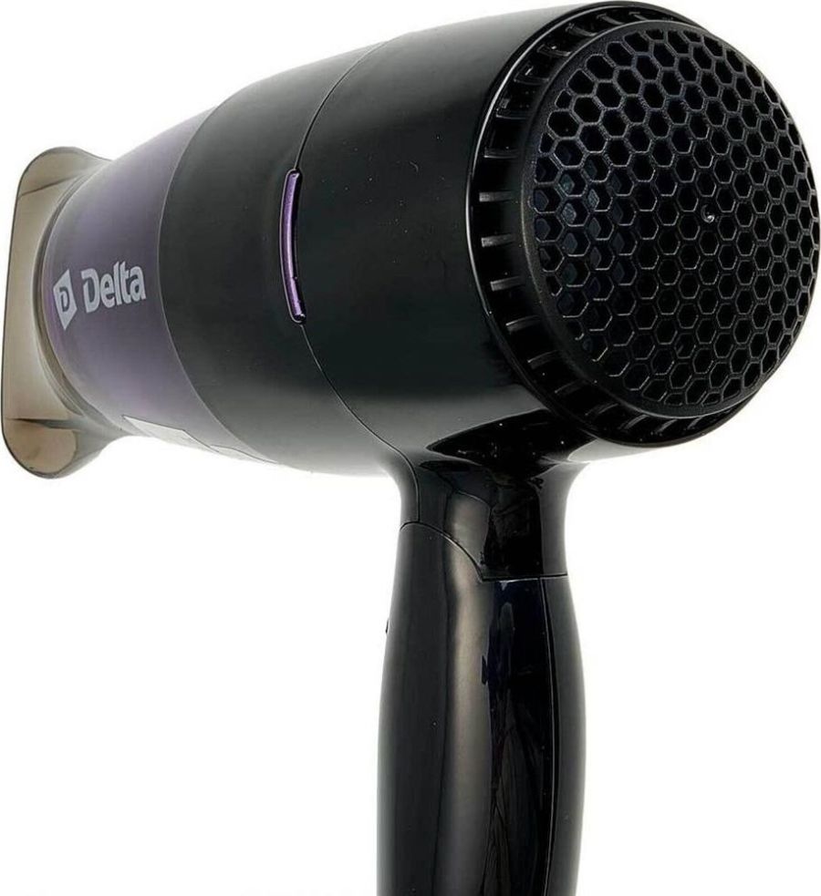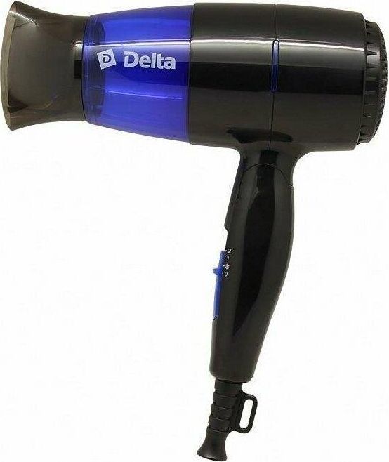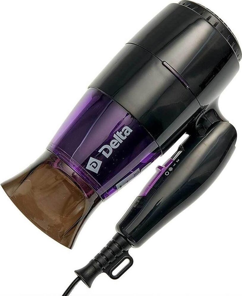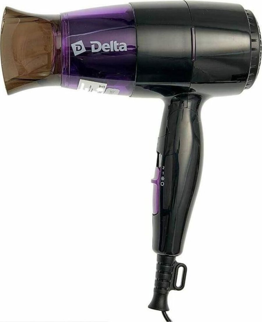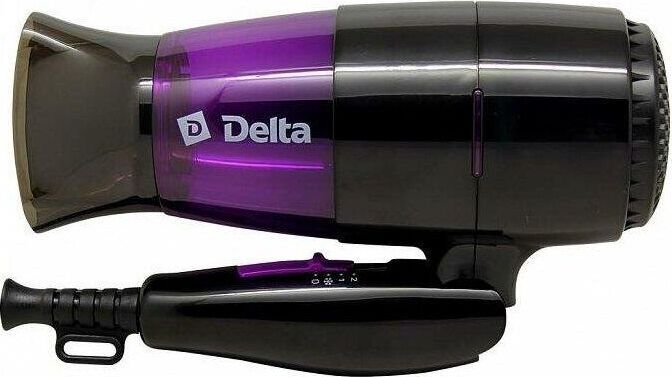 DELTA DL-0907 черный с фиолетовым Параметры Номинальная потребляемая мощность 1400 Вт Описание Фен электрический предназначен для сушки и укладки волос в бытовых и аналогичных условиях Цвет: черный с фиолетовым Удобная складная ручка Съемная насадка-концентратор Петелька для подвешивания Два режима мощности и температуры потока воздуха Функция «Холодный воздух» Защита от перегрева Упаковка: цветная коробка