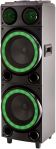 Мидисистема с Bluetooth, Максимальная мощность: 1000 Вт, RMS: 150 Вт, Корпус из МДФ, 7 цветная RGB подсветка, Микрофон проводной в комплекте, Воспроизведение музыкальных файлов в формате MP3/WMA/FLAC/WAV/APE/AAC, FM тюнер, TWS функция, Полнофункциональный пульт дистанционного управления, Функция караоке, 2 входа для подключения микрофона, Регулировка низких и высоких частот, Эхо-эффект канала микрофона, USB разъем, TF разъем, Двухканальный линейный вход, Питание: ~100 - 240 В, 50-60 Гц, Встроенный аккумулятор:12 Вольт, 7000 мАч