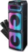 Мощность: 200 Вт. Количество динамиков, диаметр: 2 х 254 мм. Функционал: Bluetooth, FM-радио, MP3-плеер (USB / MicroSD), AUX, управляемая RGB-подсветка, TWS. Емкость аккумулятора / напряжение: 8000мАч / 11 В. Зарядка от сети 220В напрямую (без адаптера). Время автономной работы: до 8 часов. В комплекте: кабель с вилкой 220В, 2 микрофона, беспроводной пульт ДУ, инструкция пользователя. Деревянный корпус с двумя фазоинверторами. Значительно лучше пластика гасит вторичные колебания внутри корпуса, делая звук чище. Размеры колонки (без упаковки): 1010мм х 340мм х 350мм. Ролики с фиксаторами. Приглушение голоса, запись с микрофонов на флешку, порт USB для зарядки устройств.