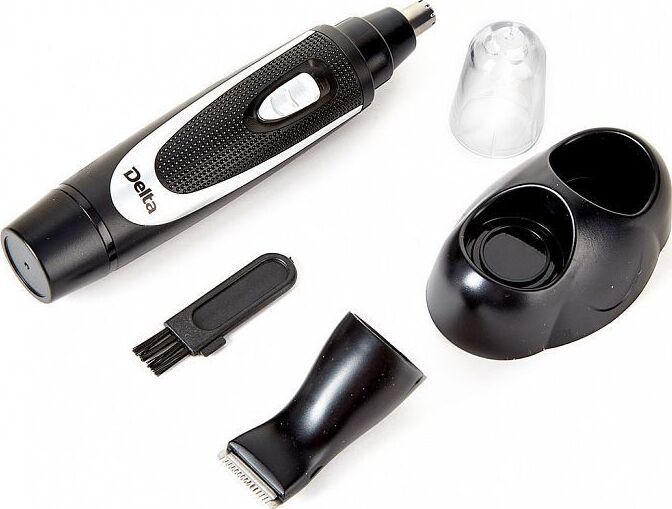 DELTA DL-4301 Параметры В комплекте 2 съемные насадки: насадка для носа, ушей и бровей 1 штука насадка для висков, бороды и усов 1 штука Номинальная потребляемая мощность 2 Вт Описание Бережное удаление нежелательных волосков Компактный размер триммера позволяет брать его с собой в дорогу Низкий уровень шума Простота использования Корпус из высококачественного пластика Цвет: черный с серебристым Лезвия из нержавеющей стали Защитная крышка Щеточка для чистки Подставка для хранения Электропитание: 2 батареи АА 1,5 В (в комплект поставки не входят)