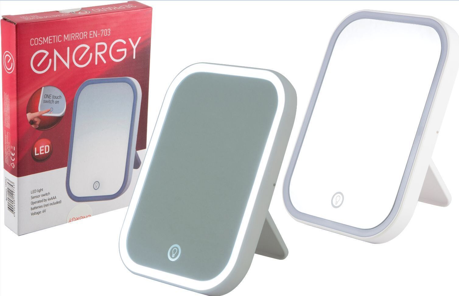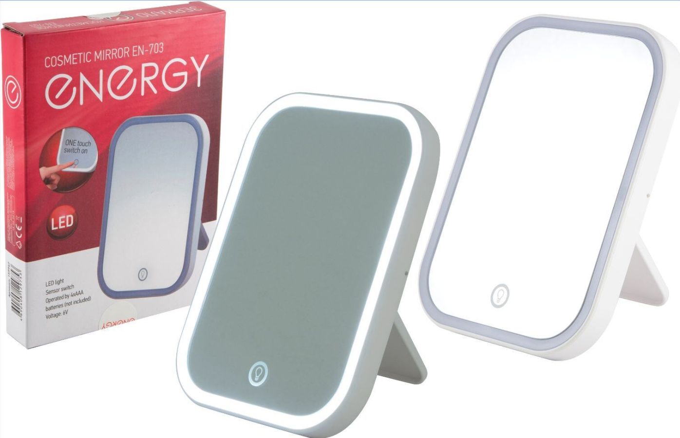 LED подсветка Сенсорная кнопка включение/выключение Регулировка яркости подсветки Размер зеркальной поверхности 14*19 см Регулируемая подставка Компактные размеры Питание от батареек: 4 х AAА (в комплект не входят)